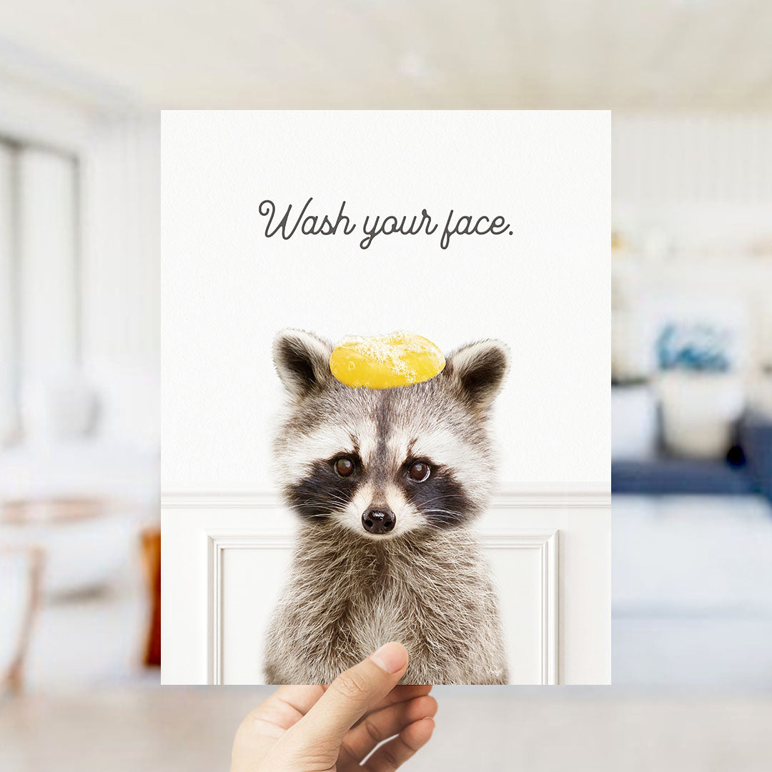 Raccoon "Wash yer face" - Bathroom Simple White