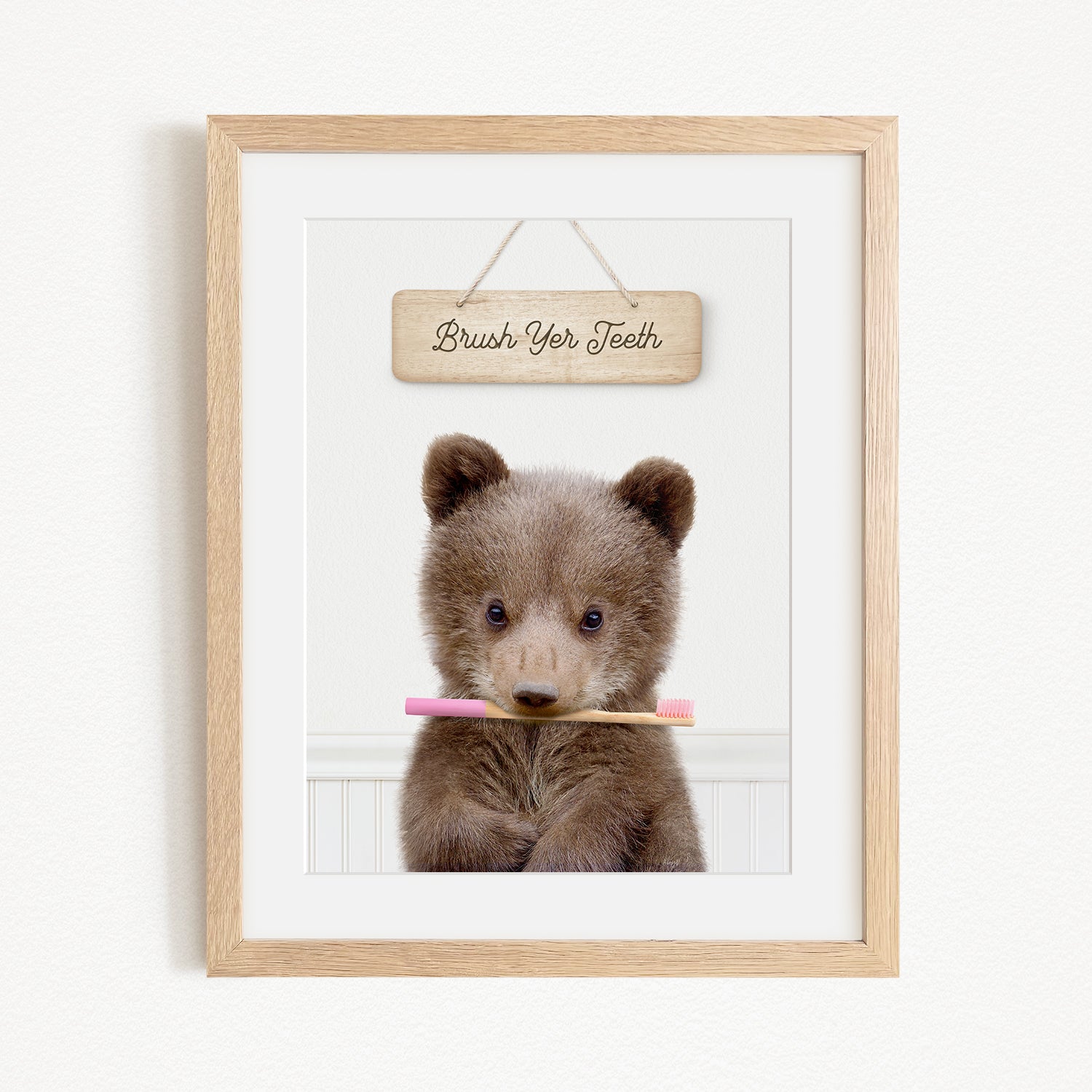 Bear Cub "Brush yer teeth" - Bathroom Cottage White