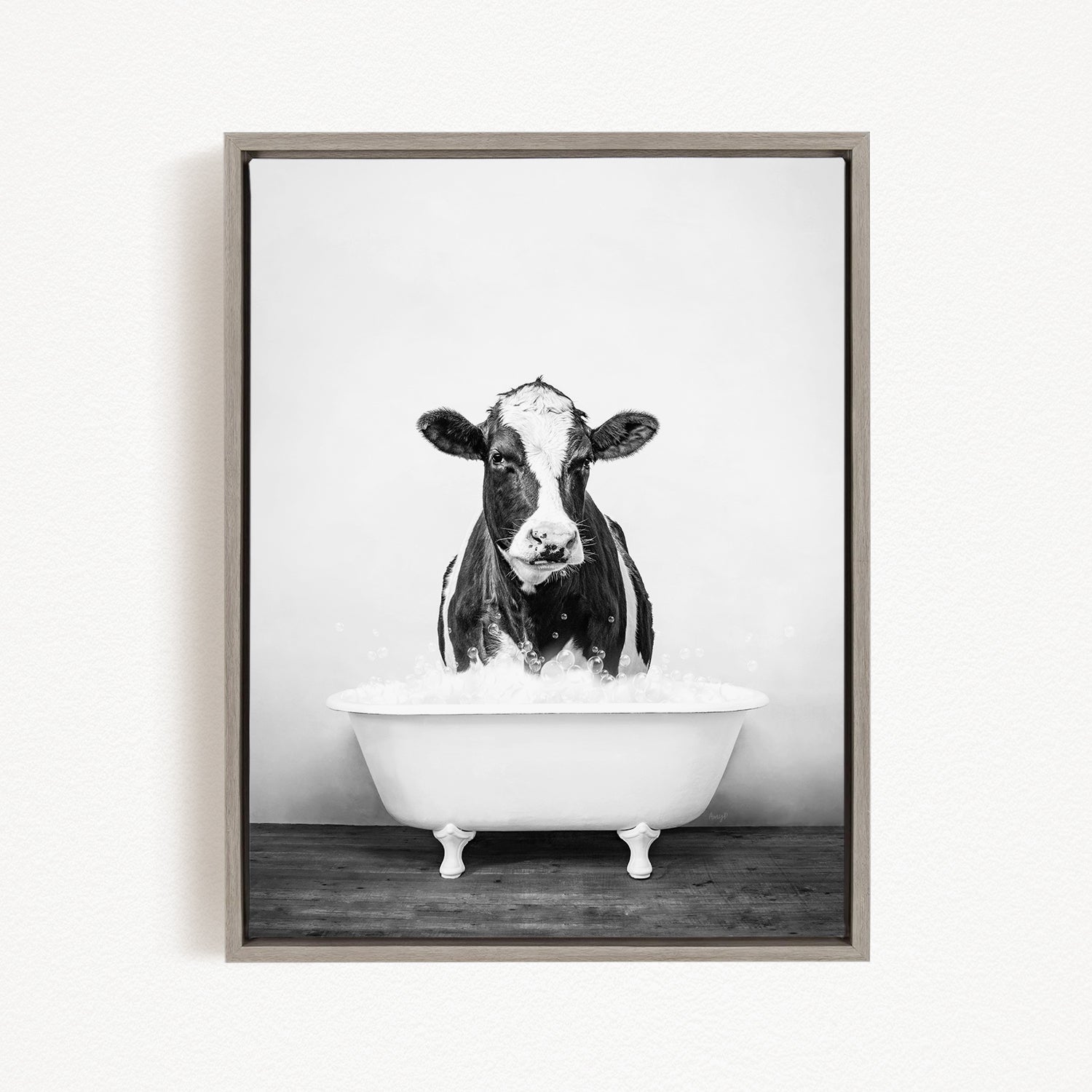Black and White Cow in Rustic Black and White