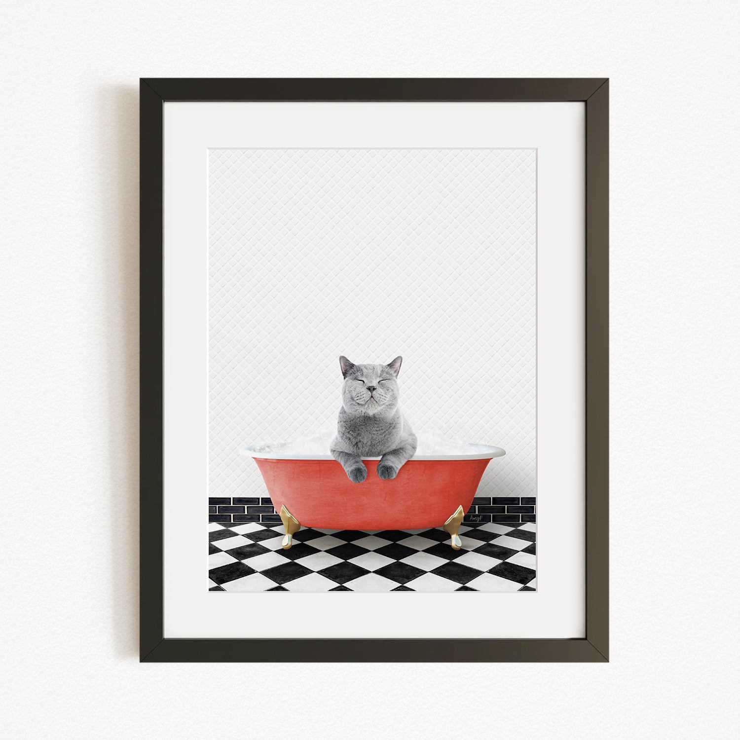 Cat in Checker Floor Bath