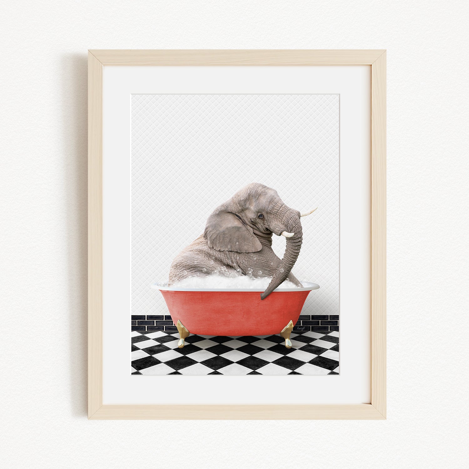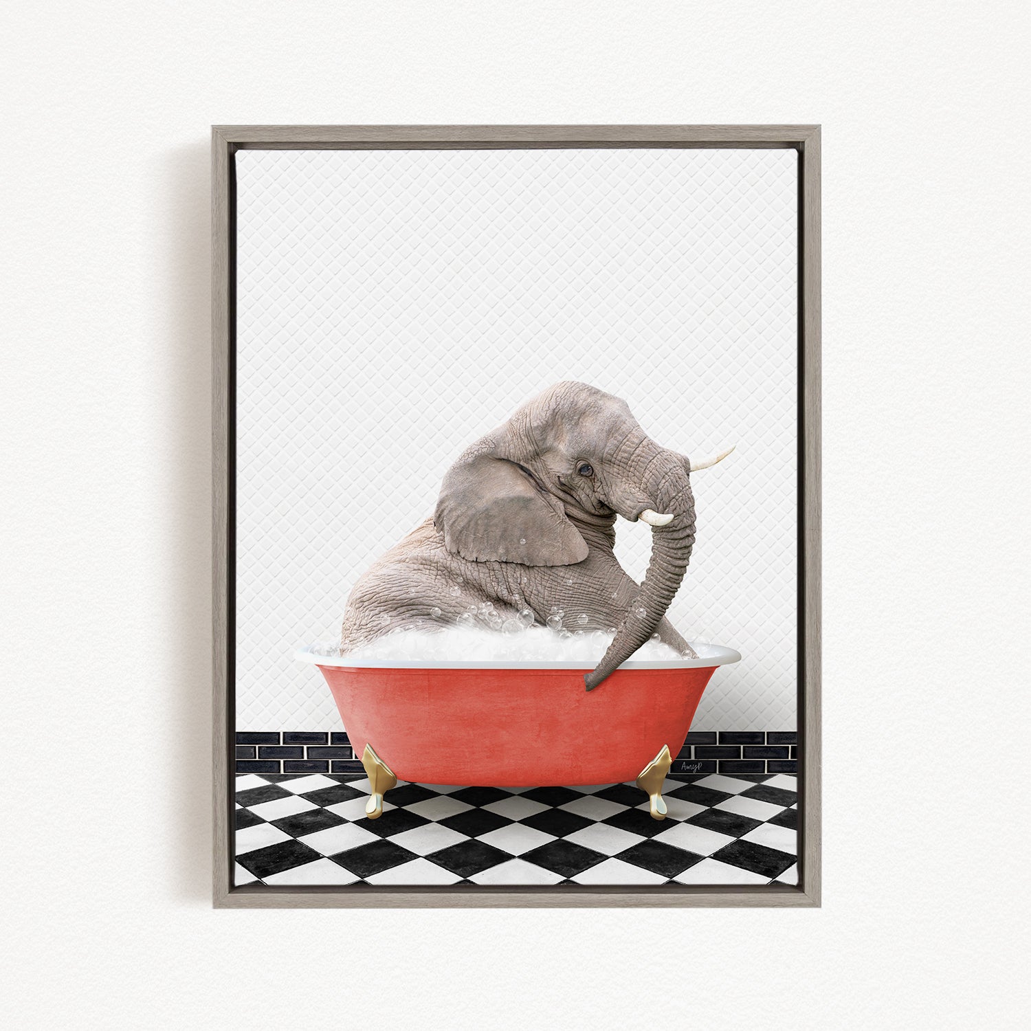 Young Elephant in Checker Floor Bath