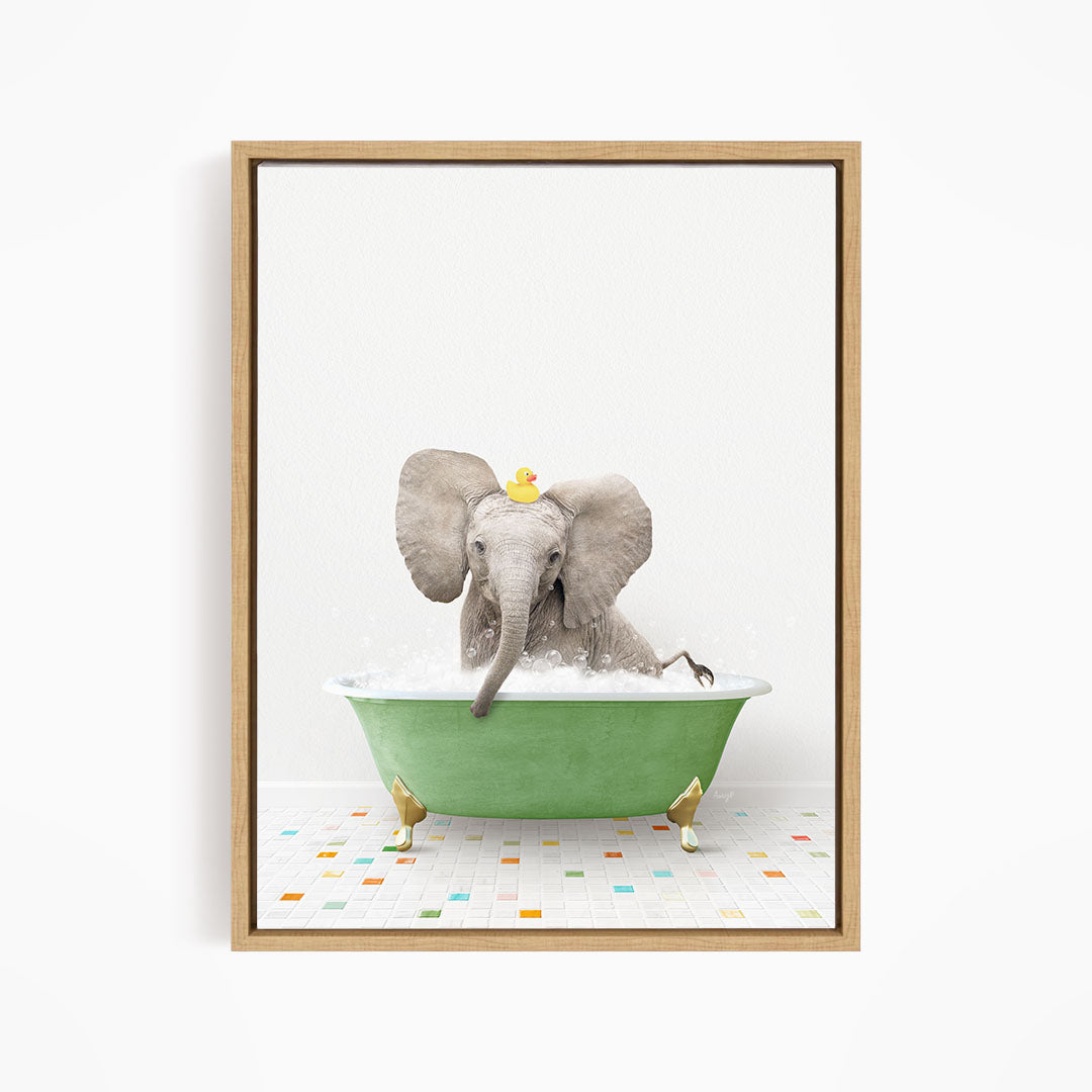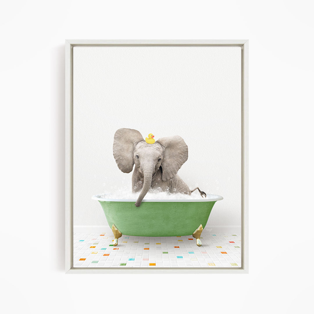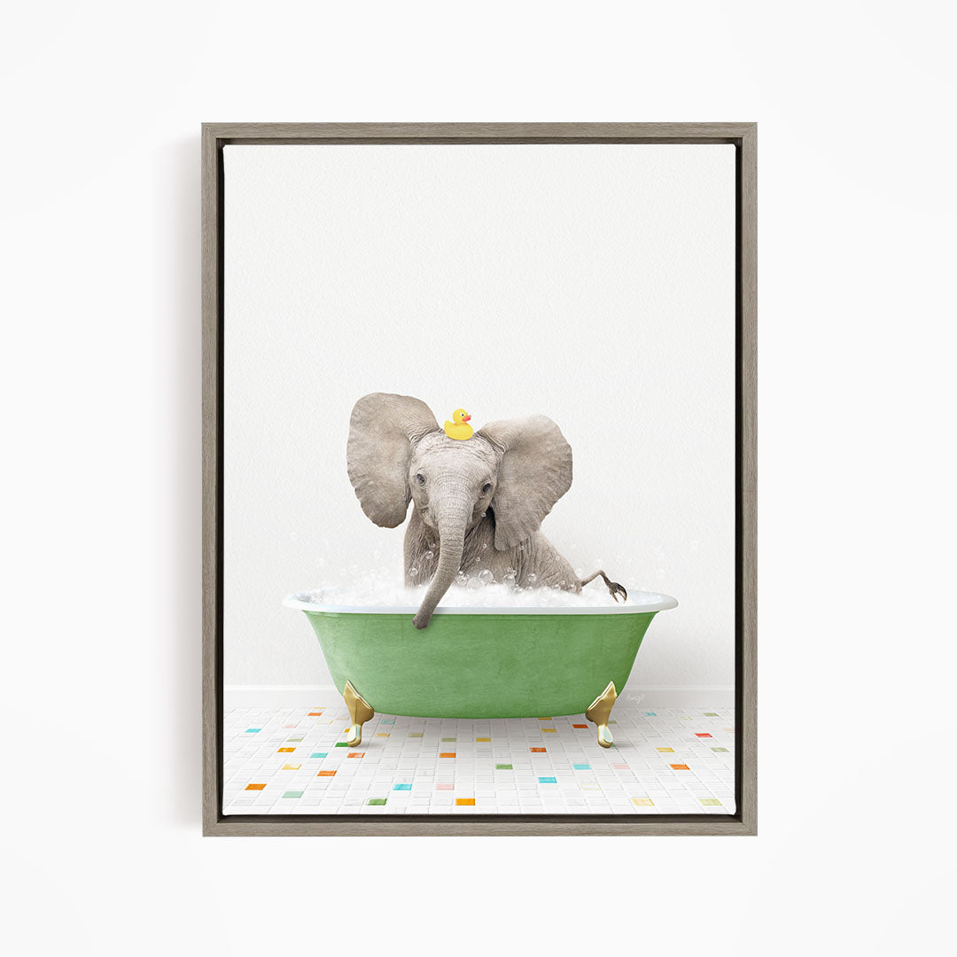 Baby Elephant No3 in Green Bathtub on Colored Tile