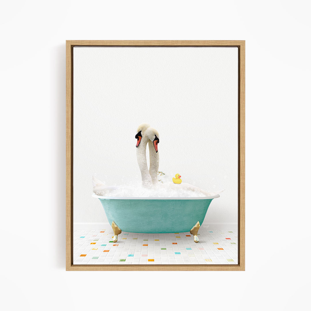 Swans in Teal Bathtub on Colored Tile