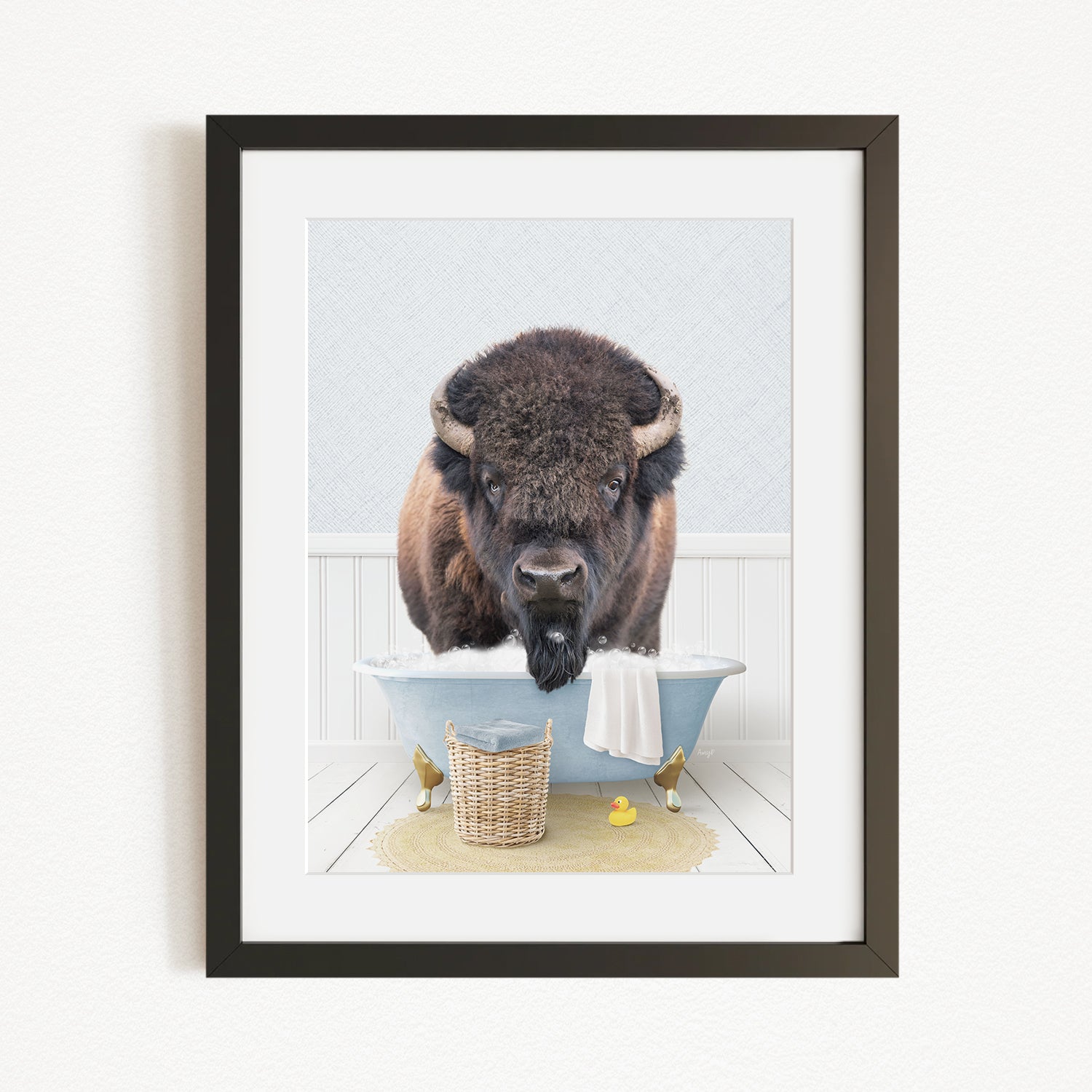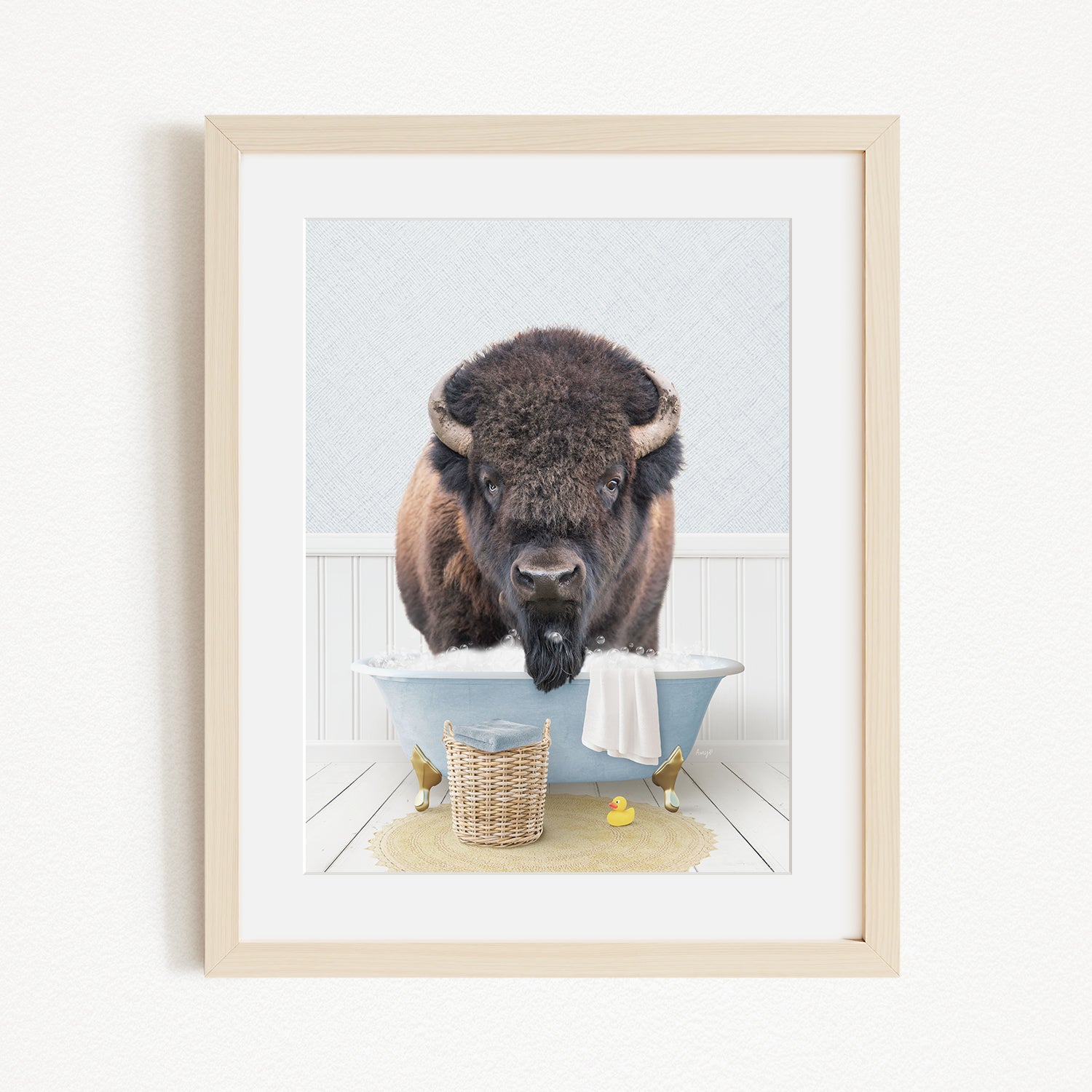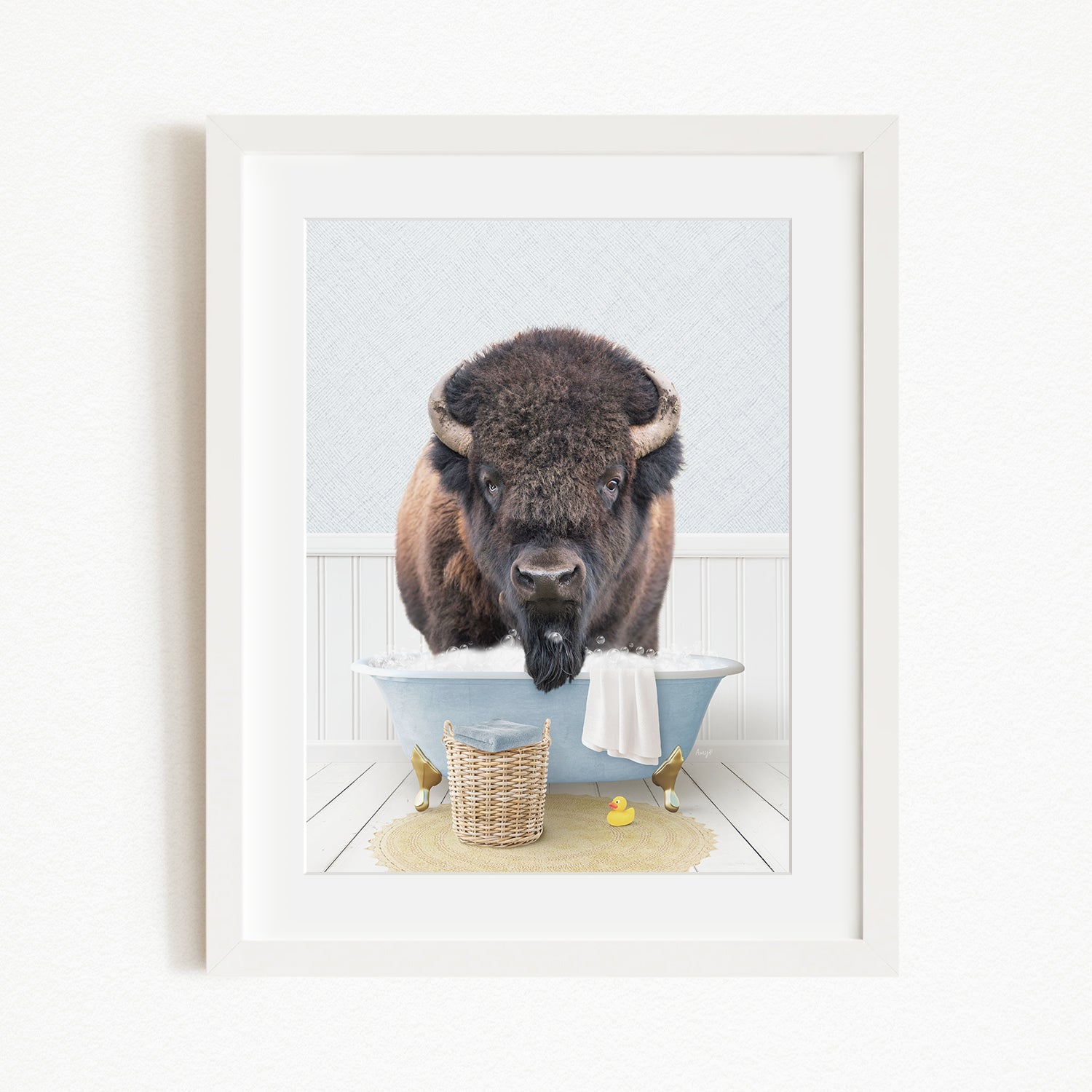 Bison in Cottage Blue Bath