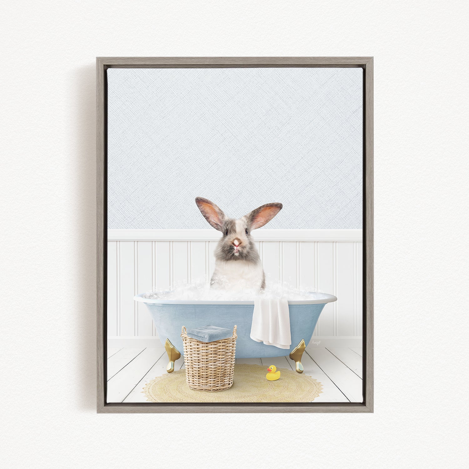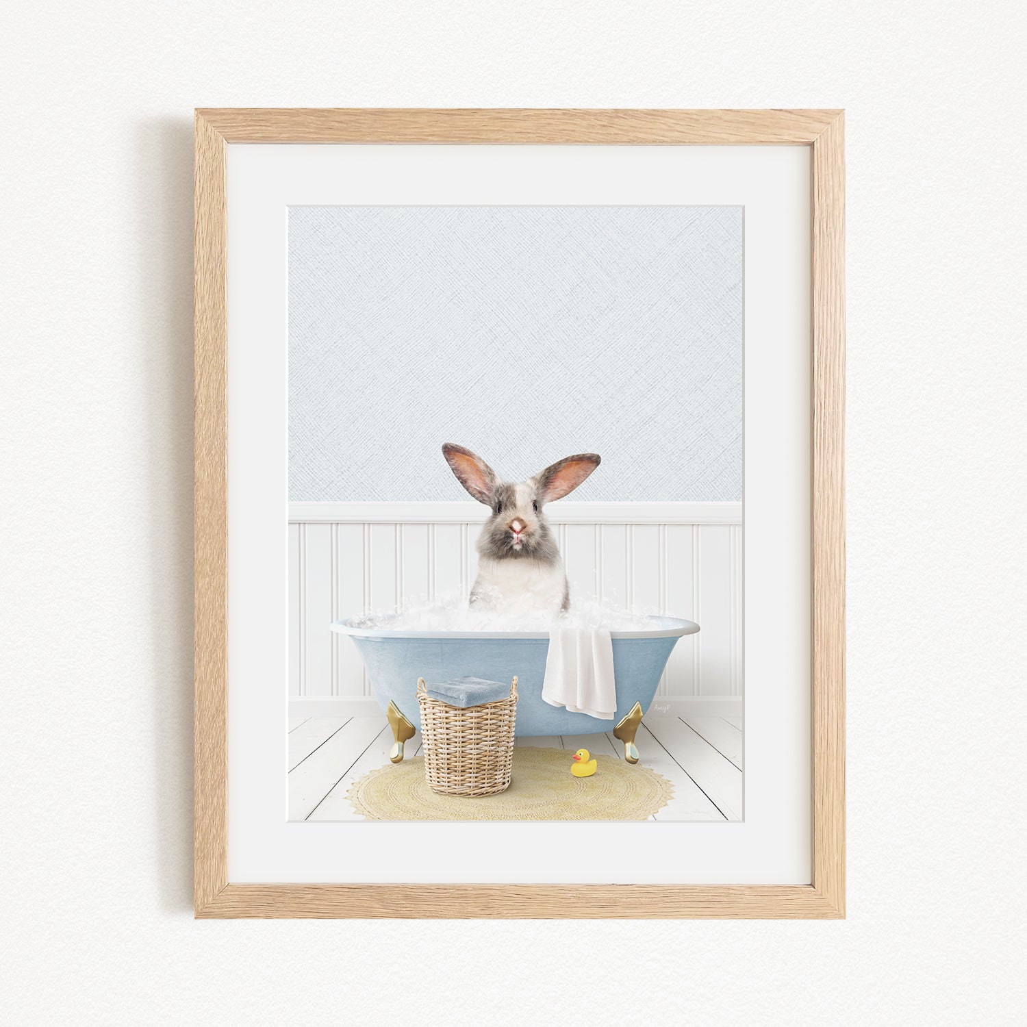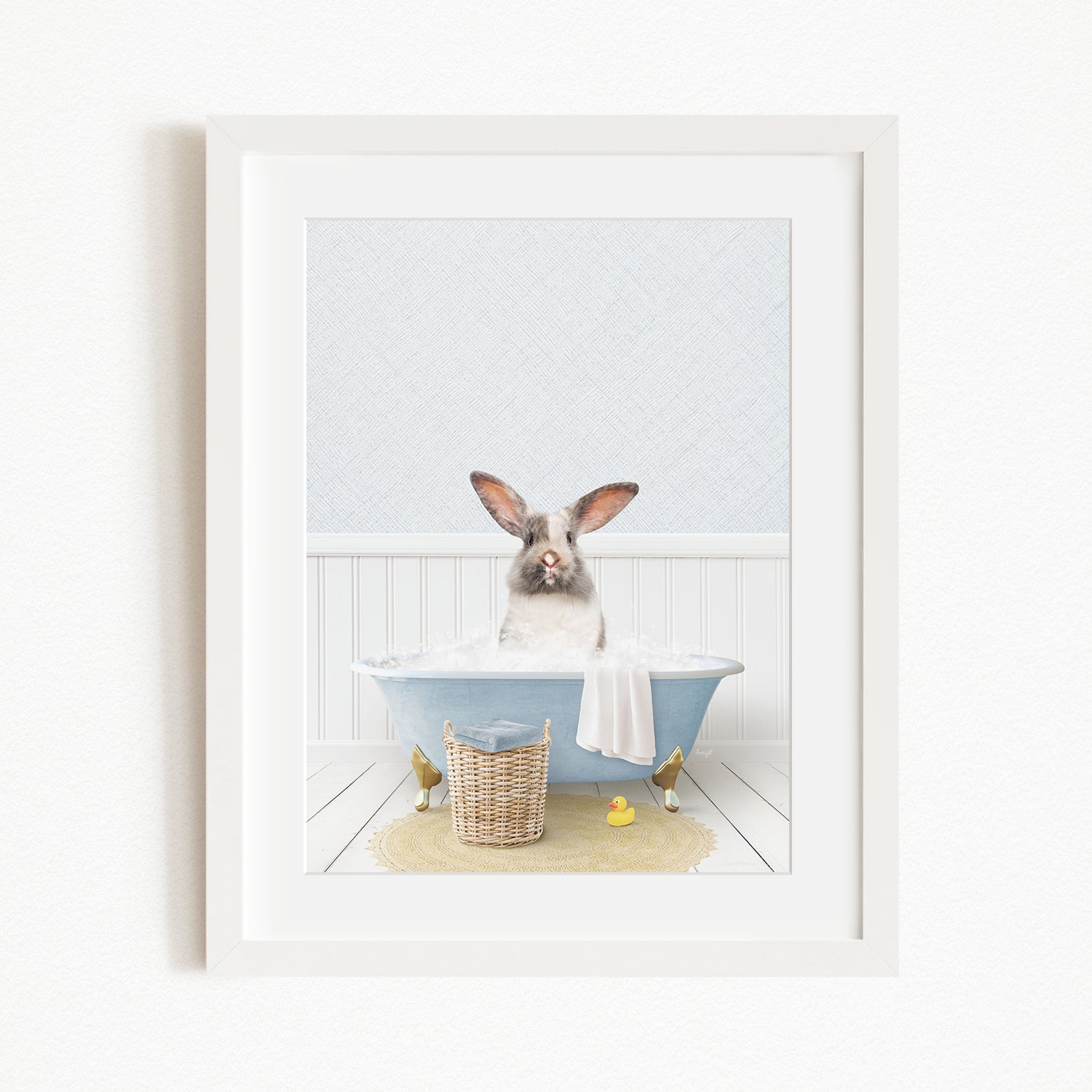 Bunny in Cottage Blue Bath