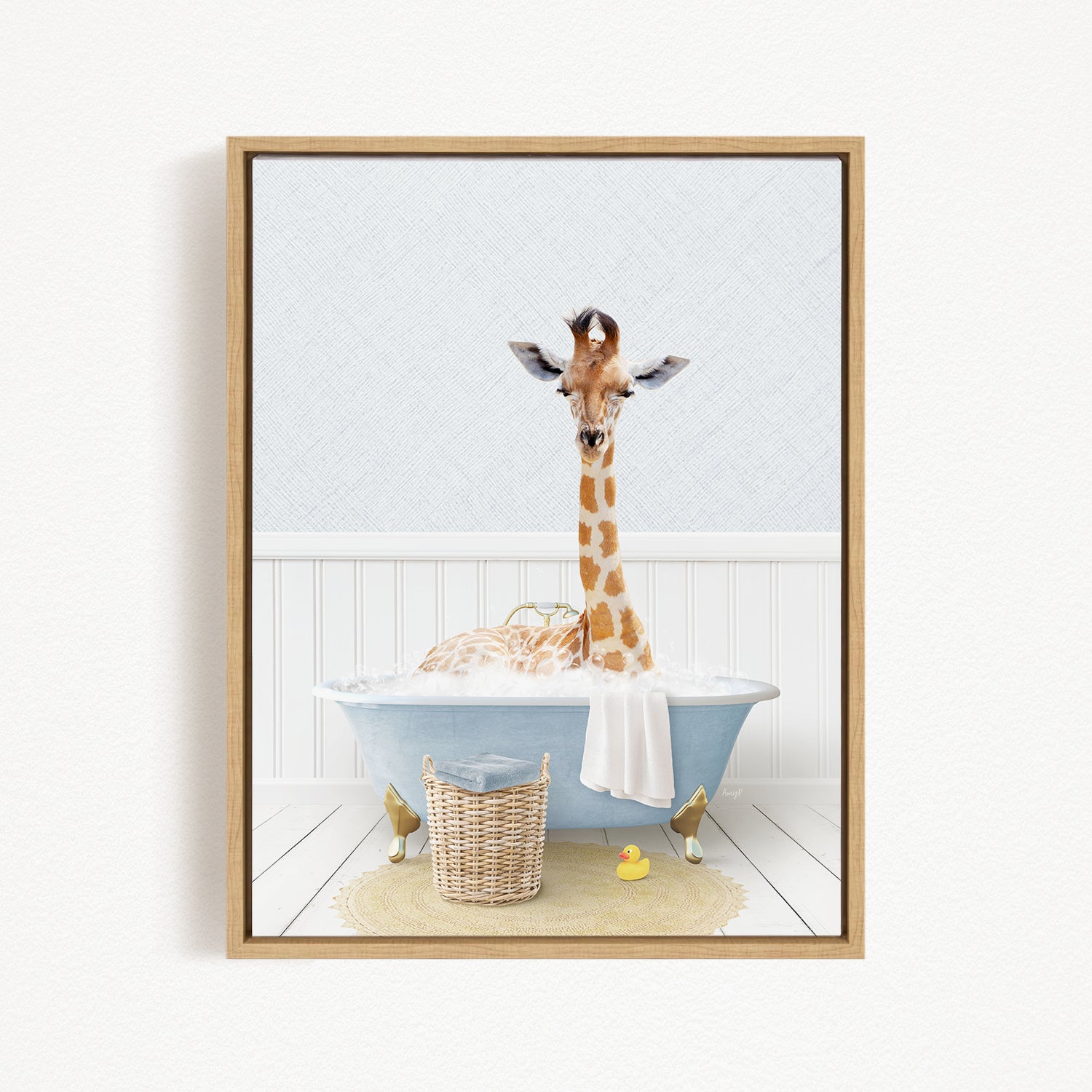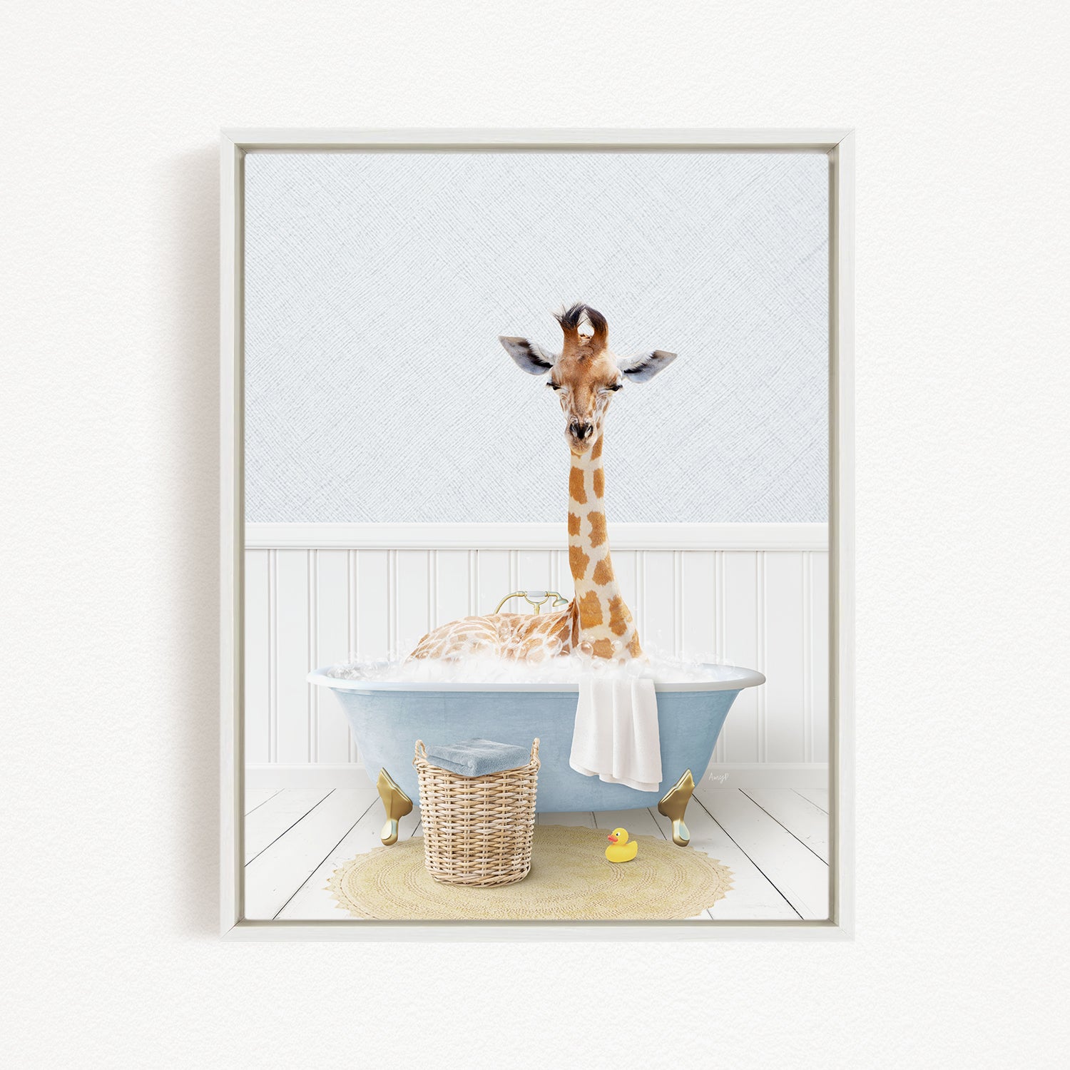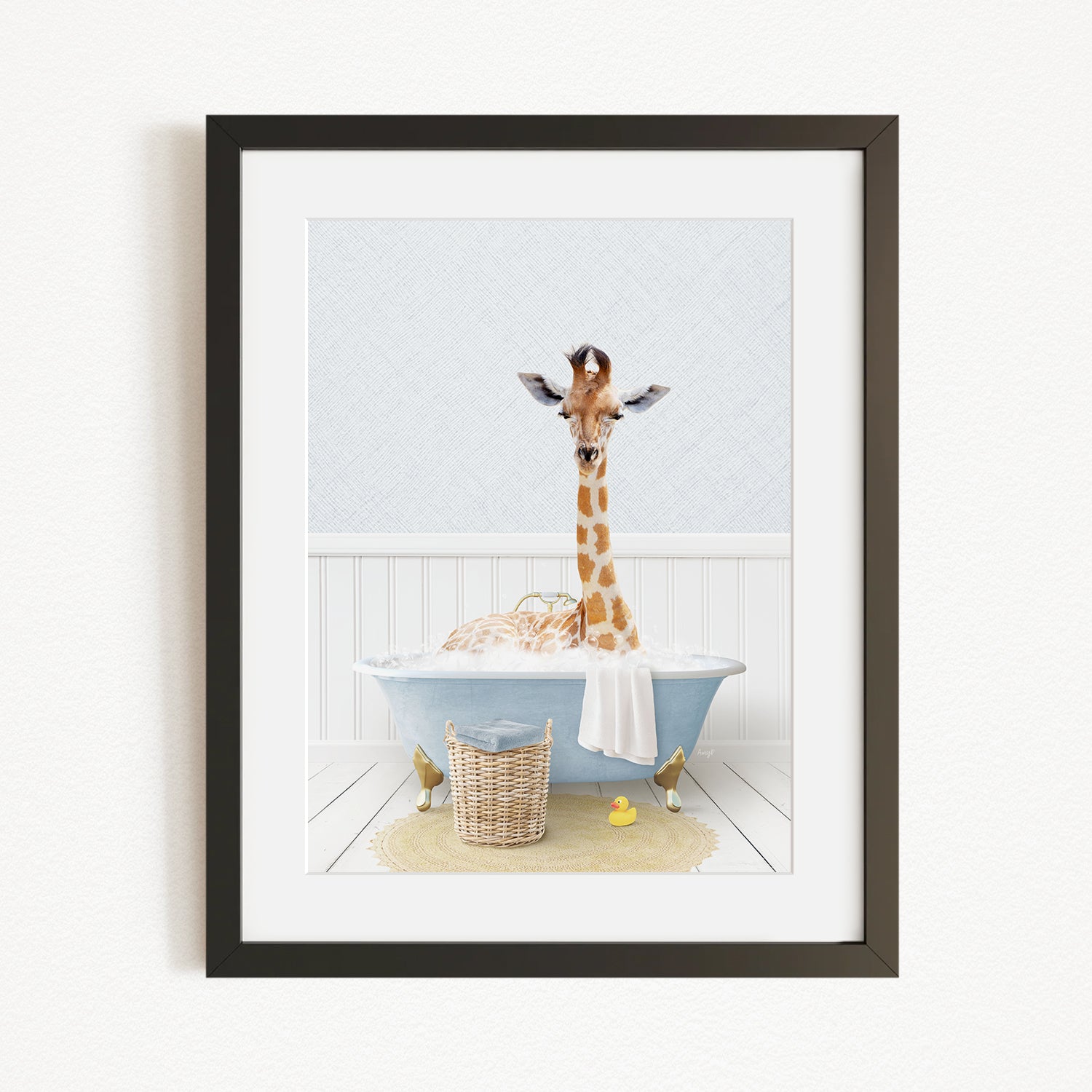 Giraffe in Cottage Blue Bath