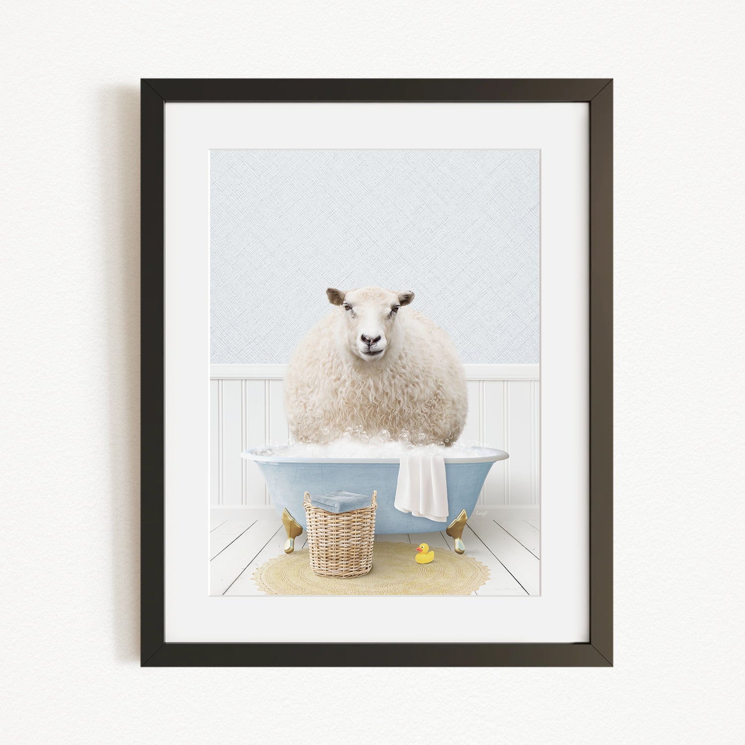 Sheep in Cottage Blue Bath