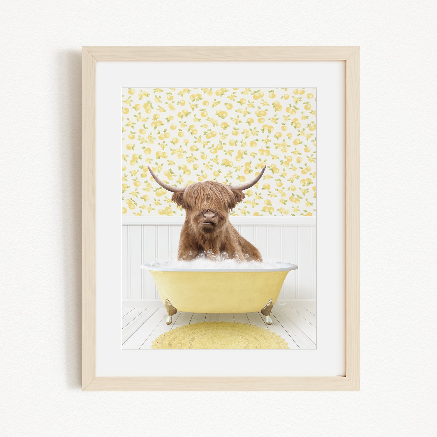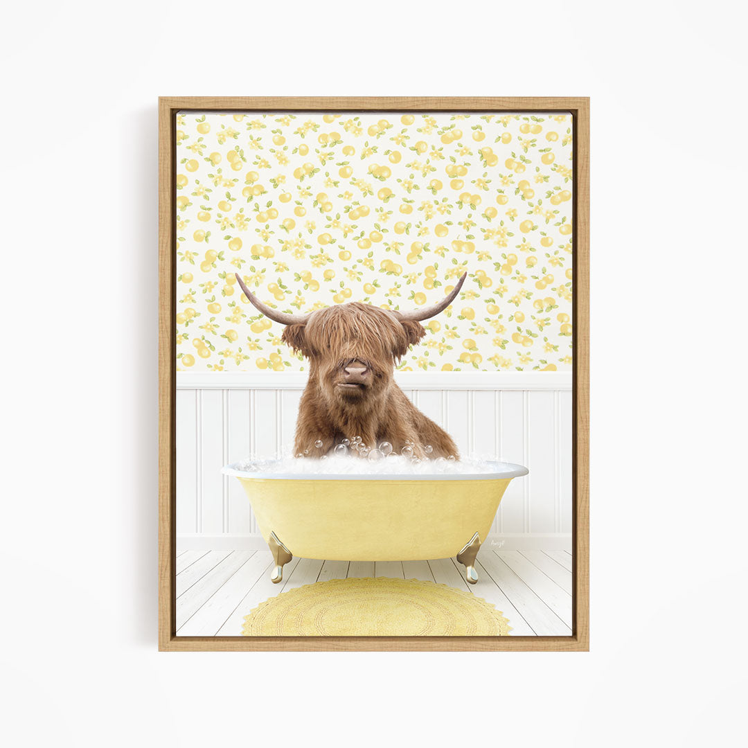 Highland Cow in Cottage Yellow Bath