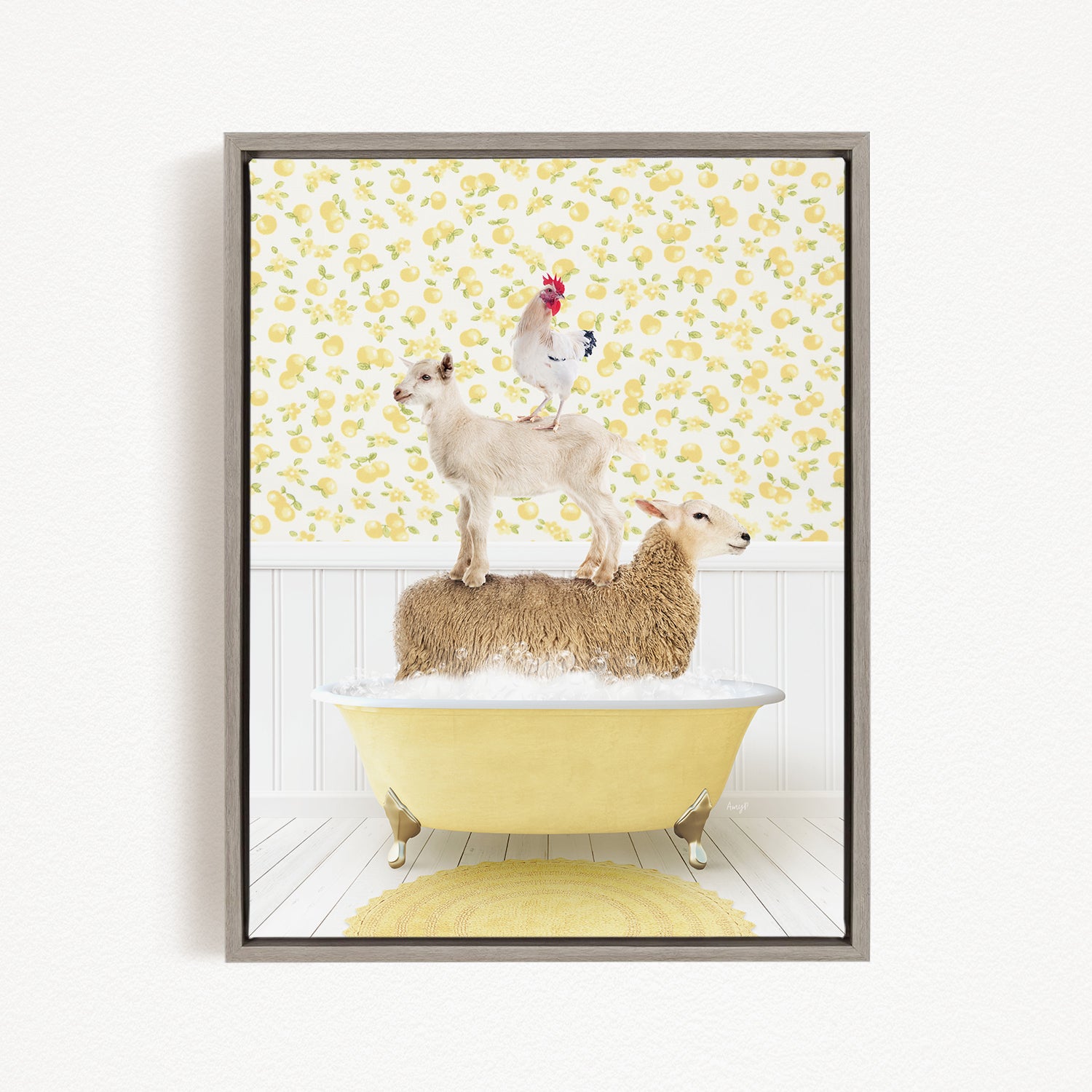 Stacked Farm Animals in Cottage Yellow Bath