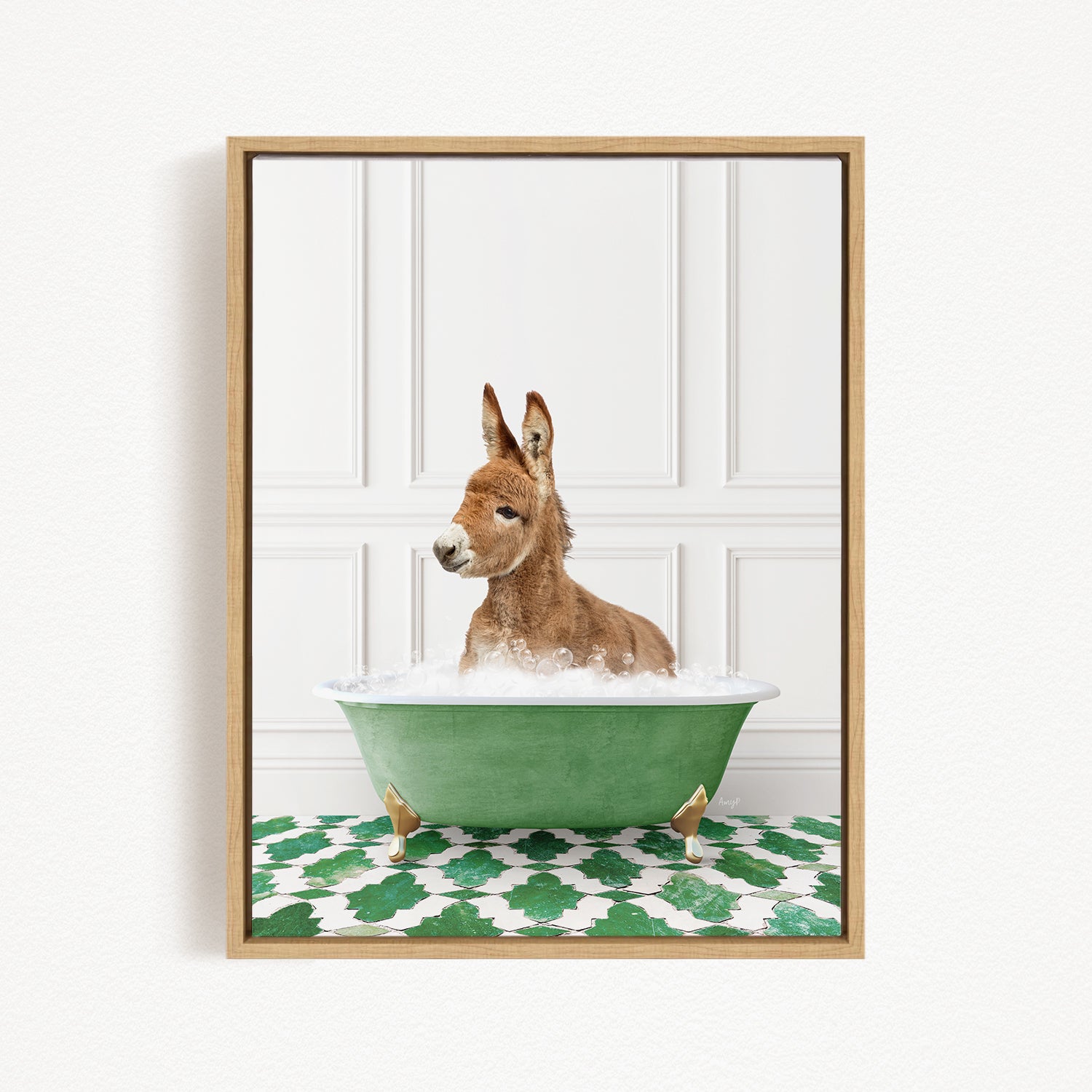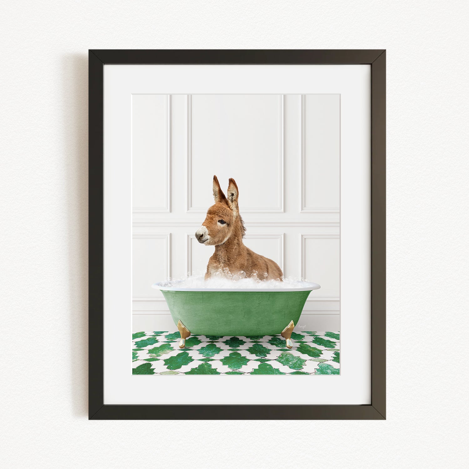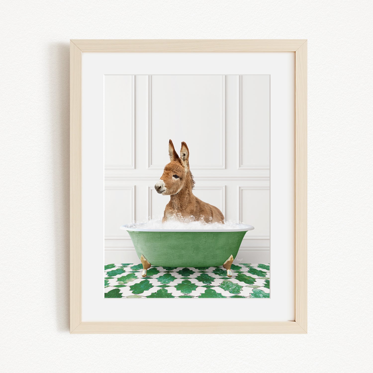 Baby Donkey in Eclectic Green Panel Wall Bath