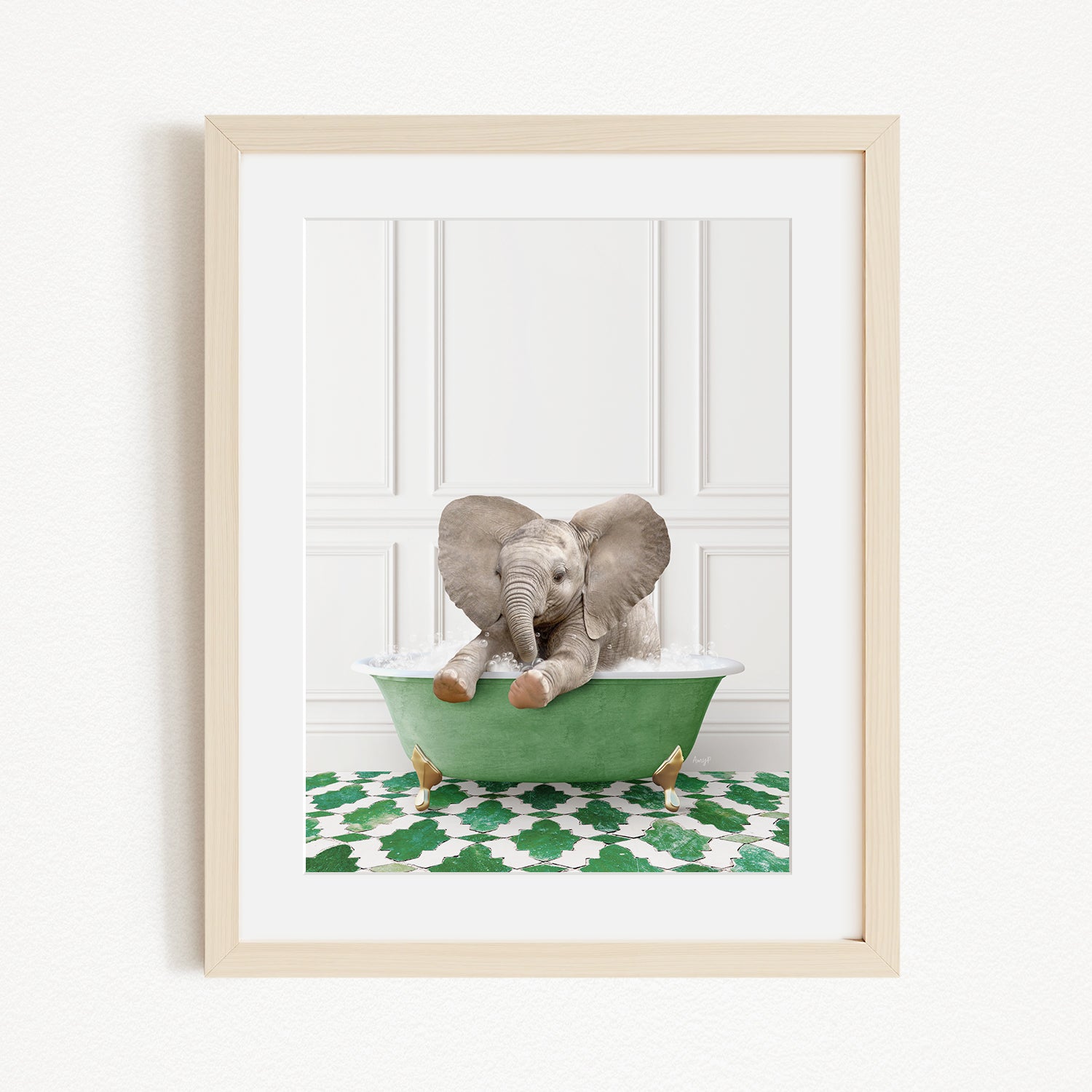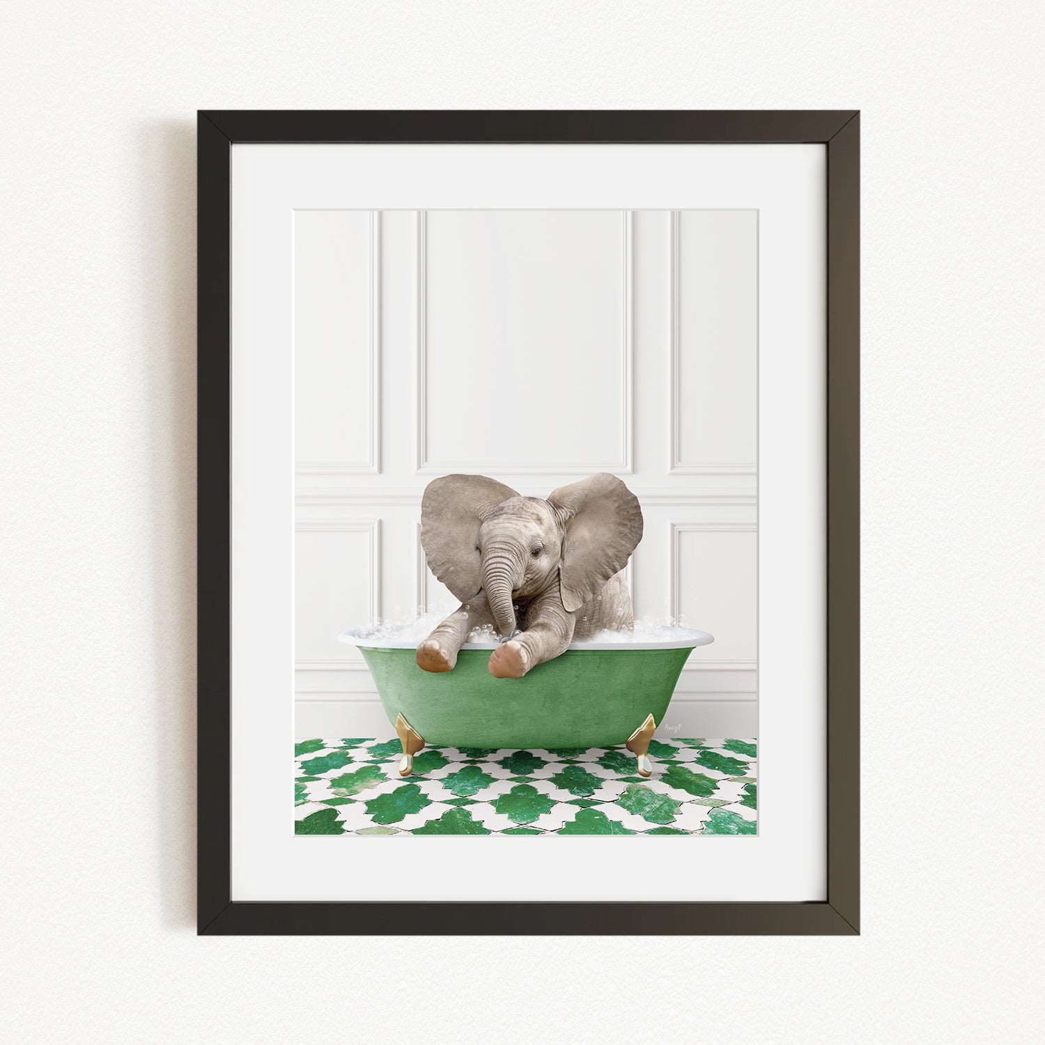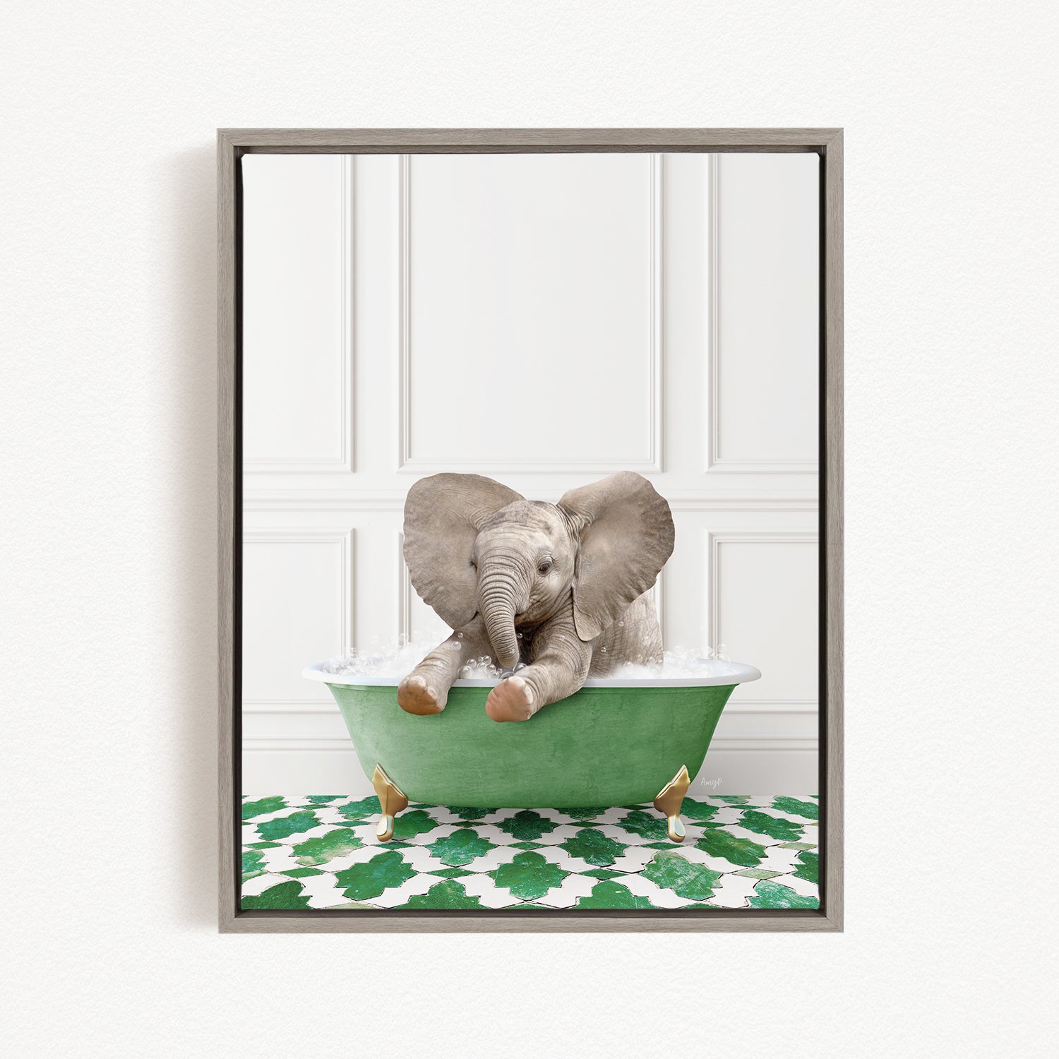 Baby Elephant No6 in Eclectic Green Panel Wall Bath