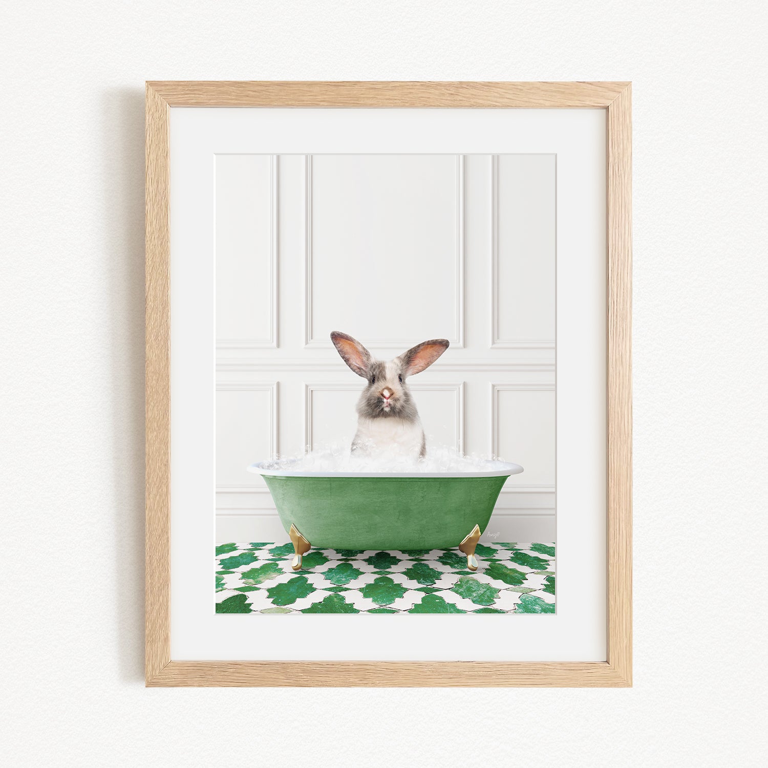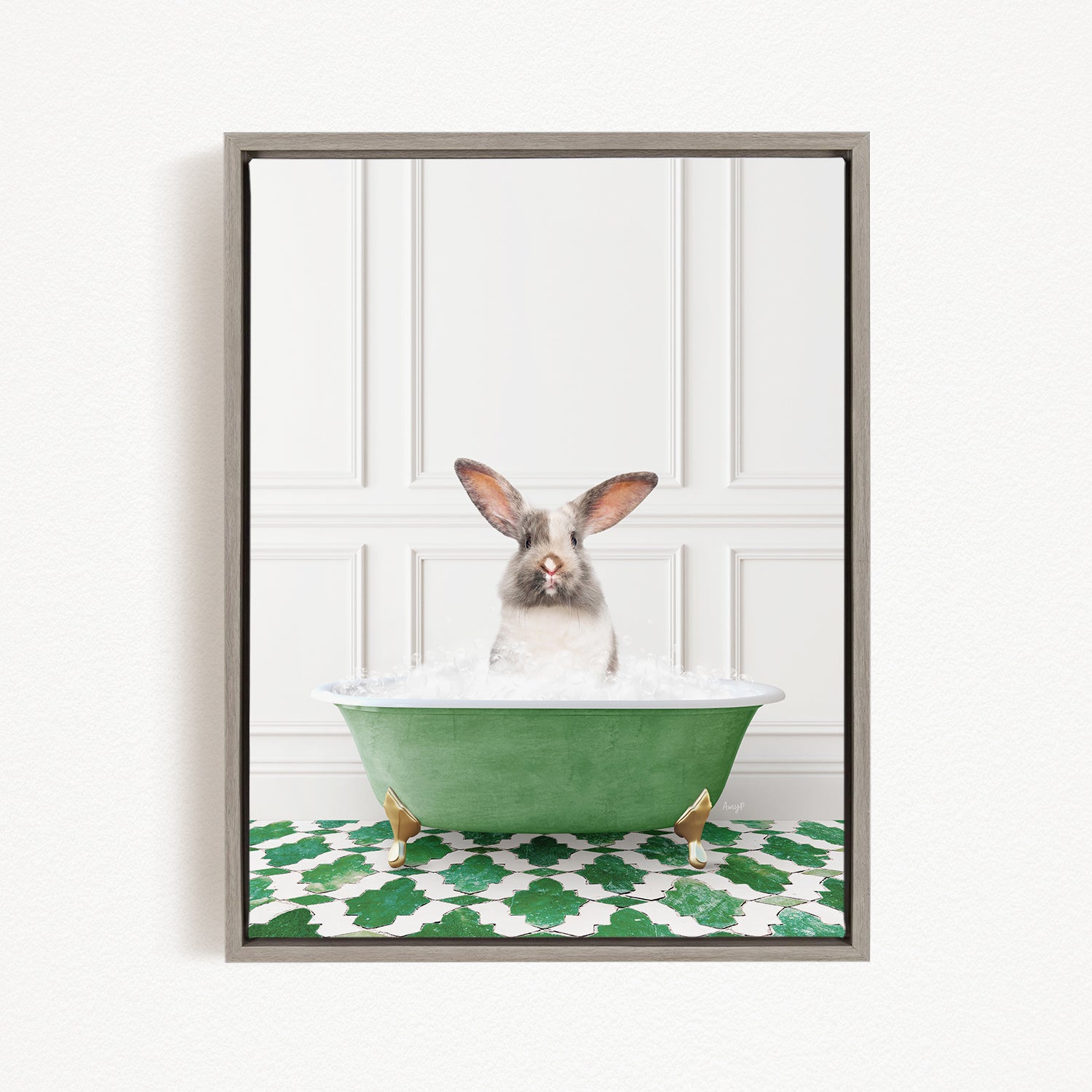 Bunny in Eclectic Green Panel Wall Bath