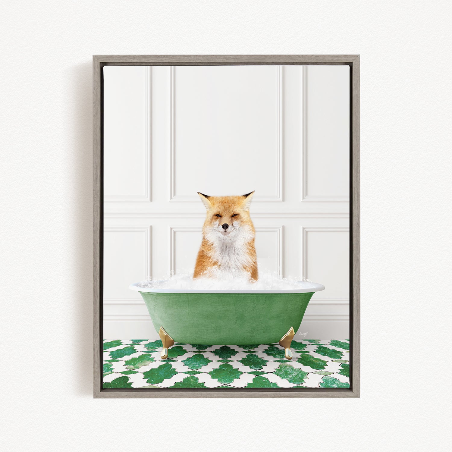 Fox in Eclectic Green Panel Wall Bath