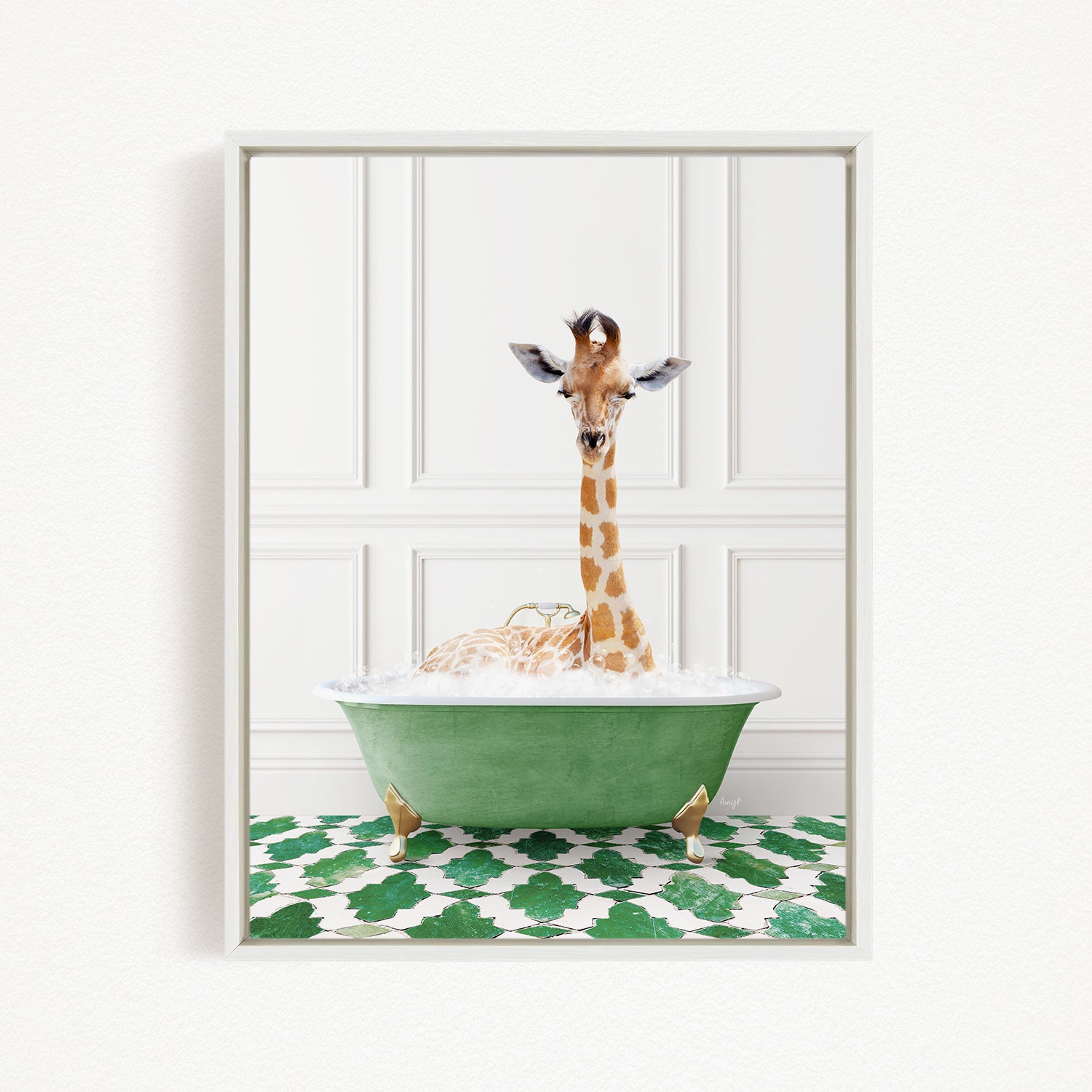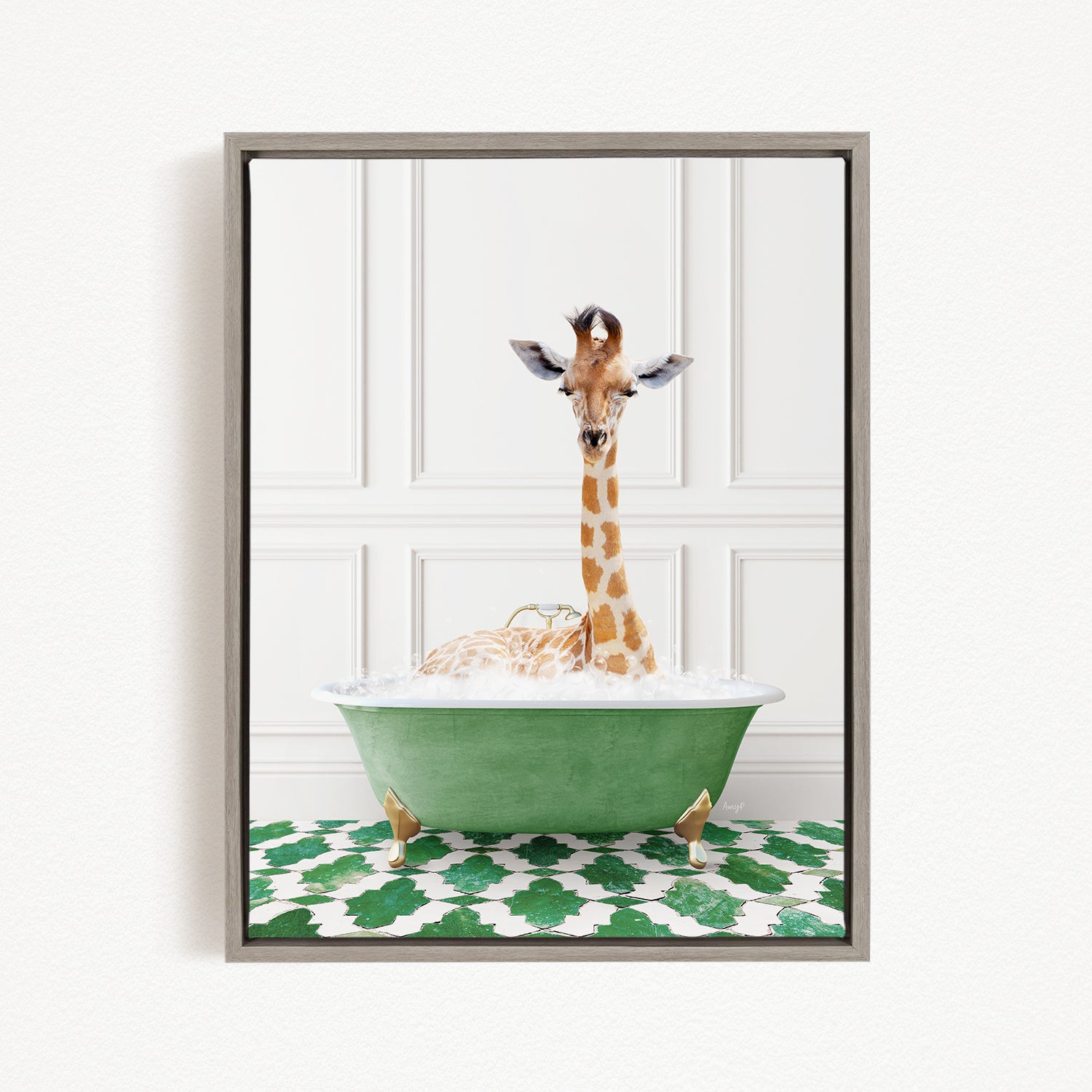 Giraffe in Eclectic Green Panel Wall Bath