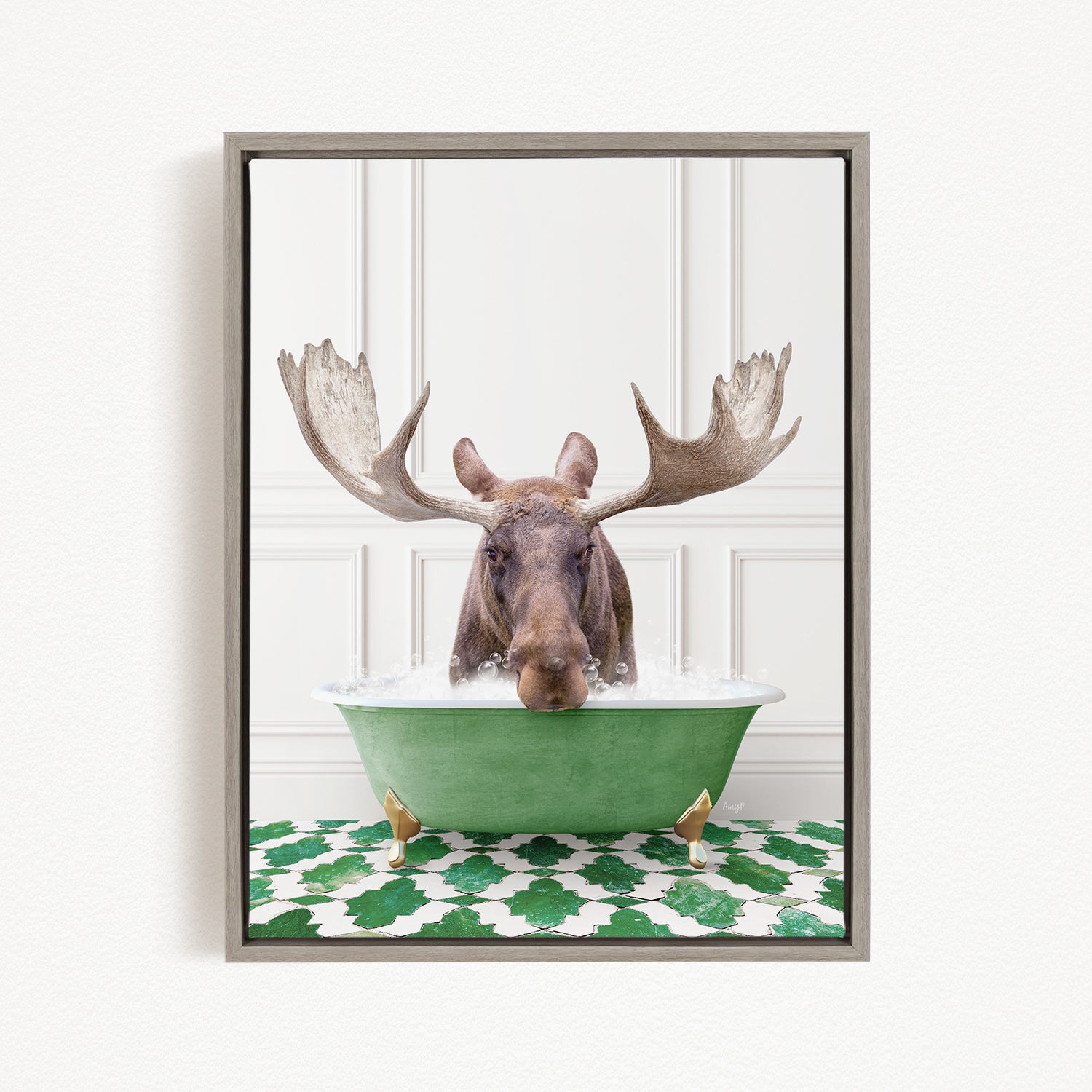 Moose in Eclectic Green Panel Wall Bath