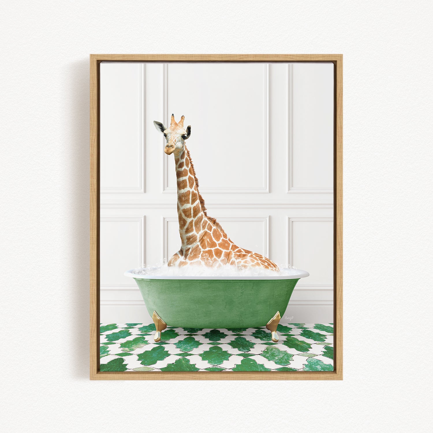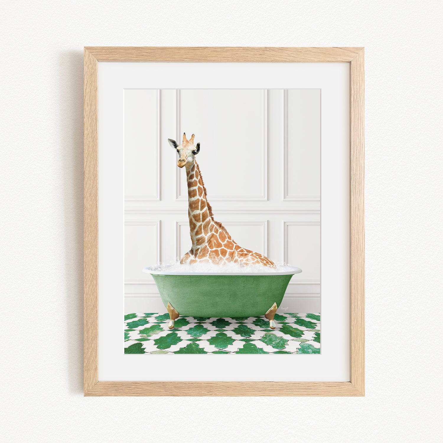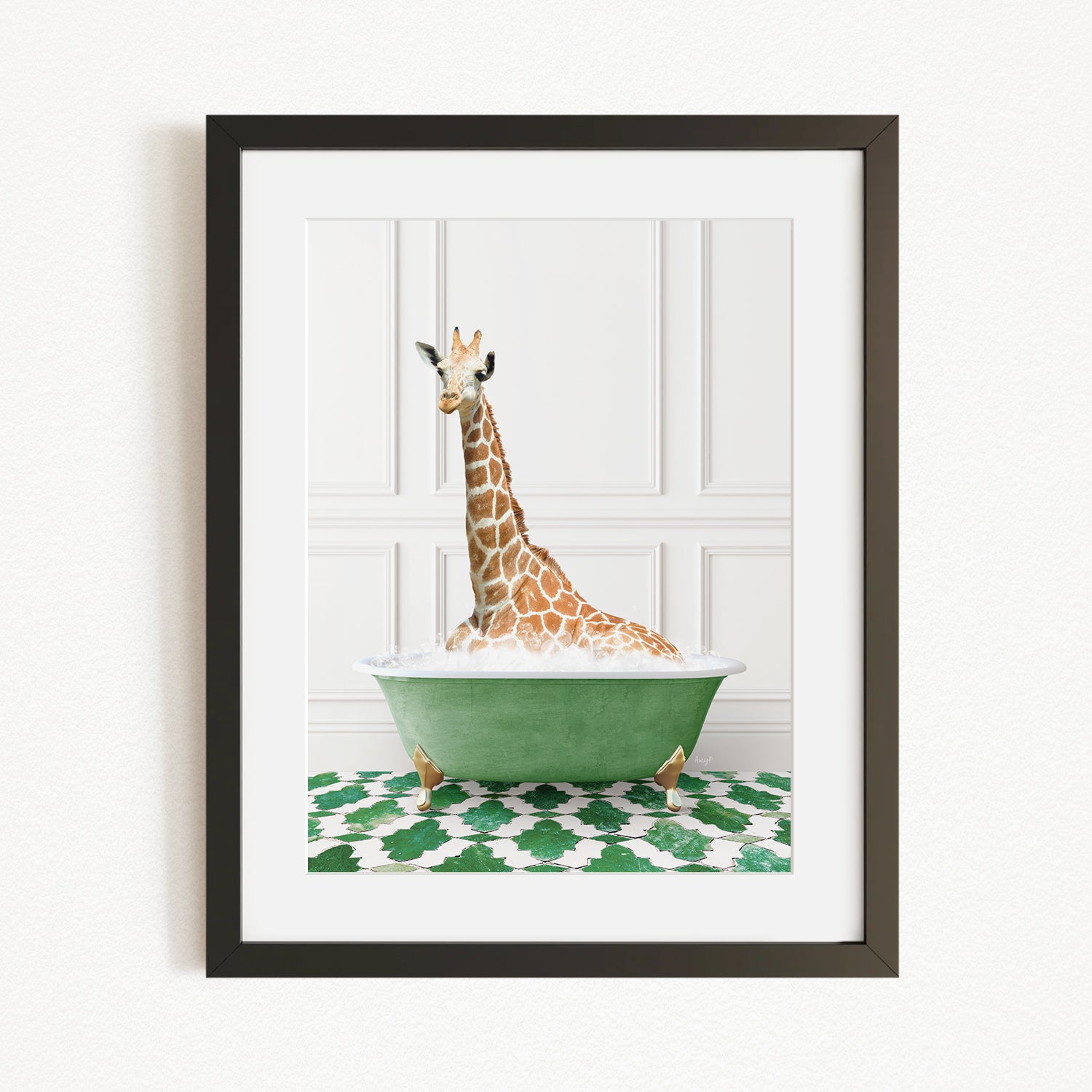 Tall Giraffe in Eclectic Green Panel Wall Bath