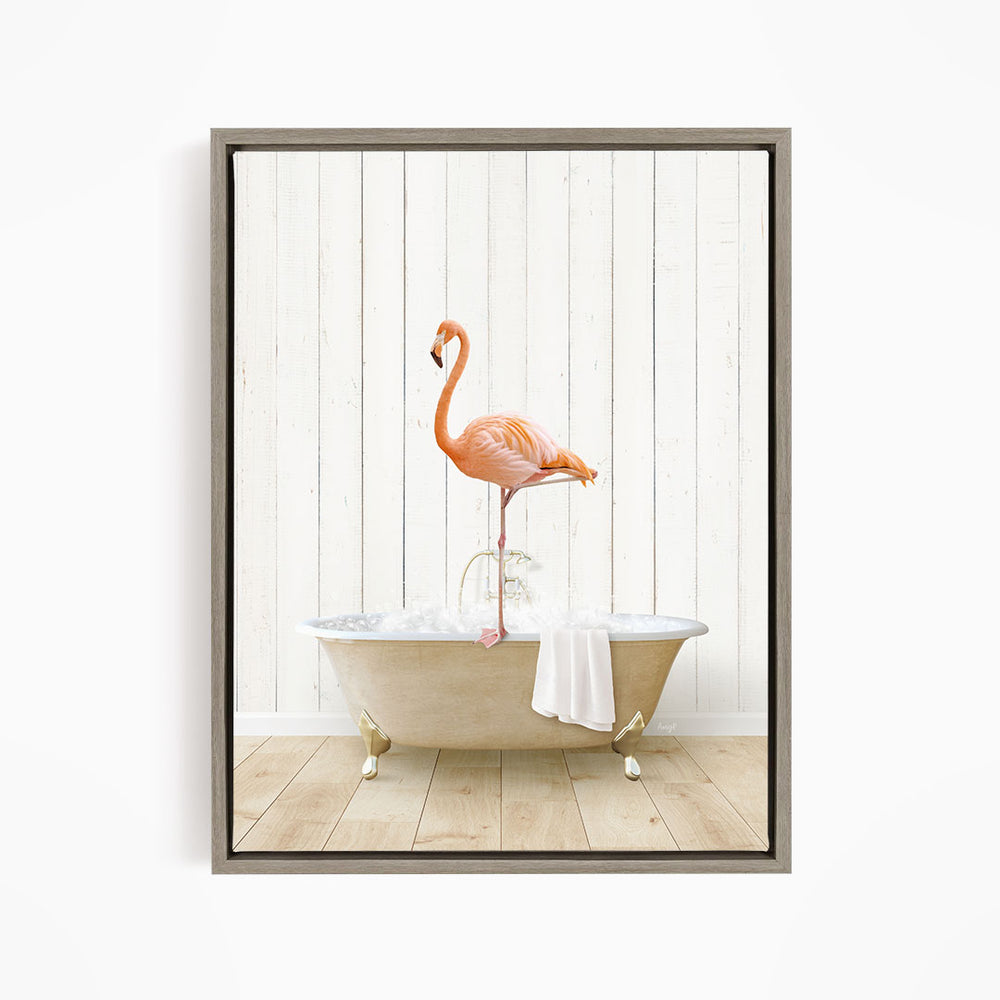 Flamingo in Farmhouse Bath