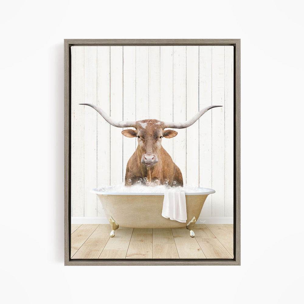 Texas Longhorn Cow in Farmhouse Bath