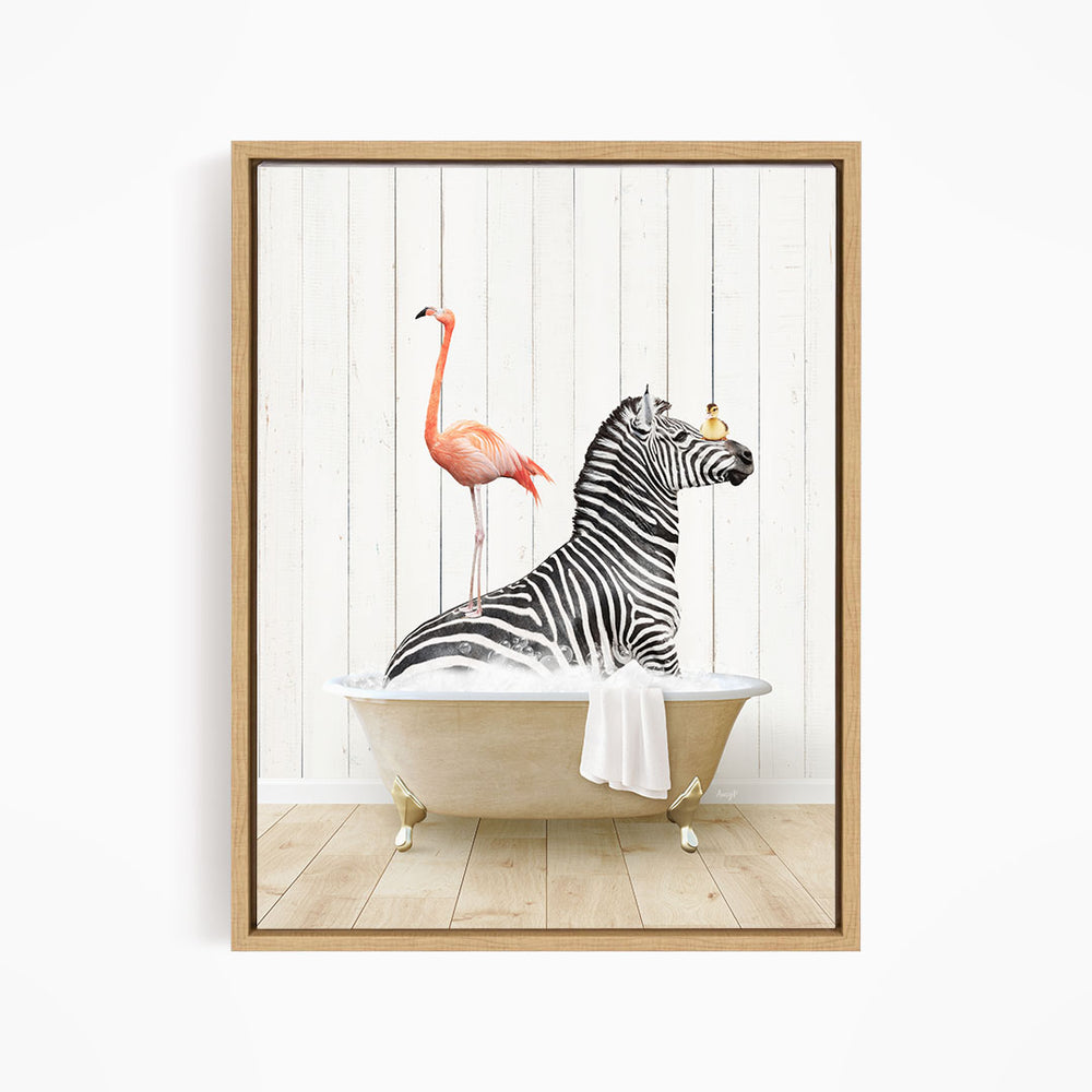 Zebra and Flamingo in Farmhouse Bath