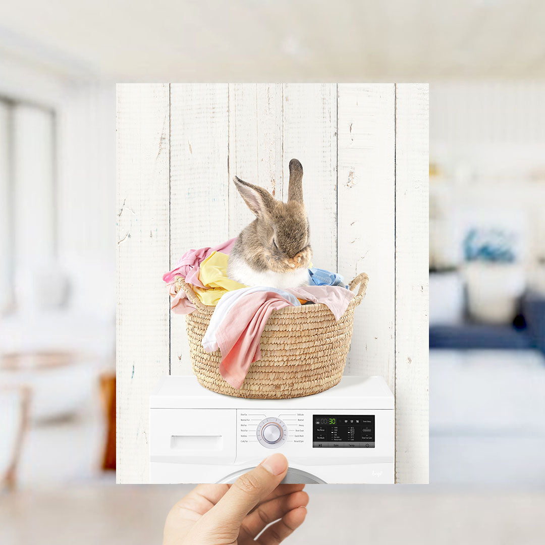 Bashful Bunny in Laundry Basket on Washing Machine- Farmhouse Wall
