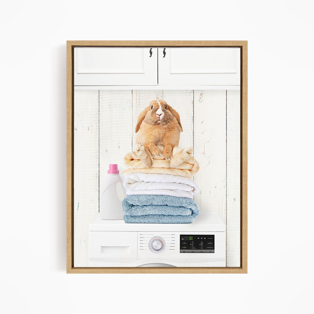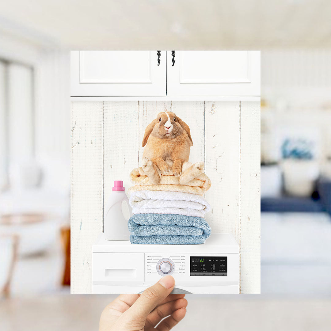 Pudgy Bunny on Folded Towels on Washing Machine - Farmhouse Wall