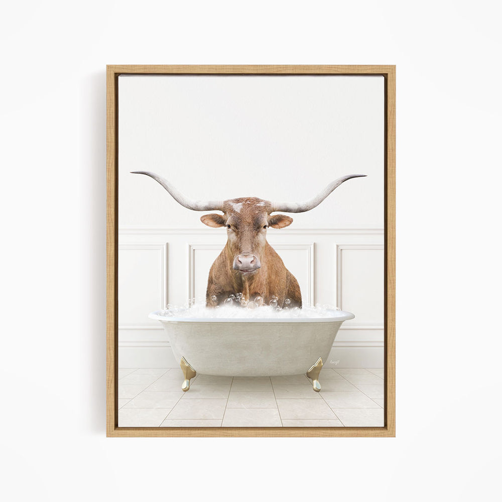 Texas Longhorn Cow in Modern Neutral Bath