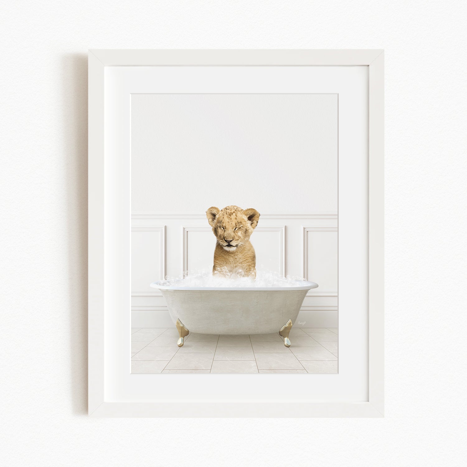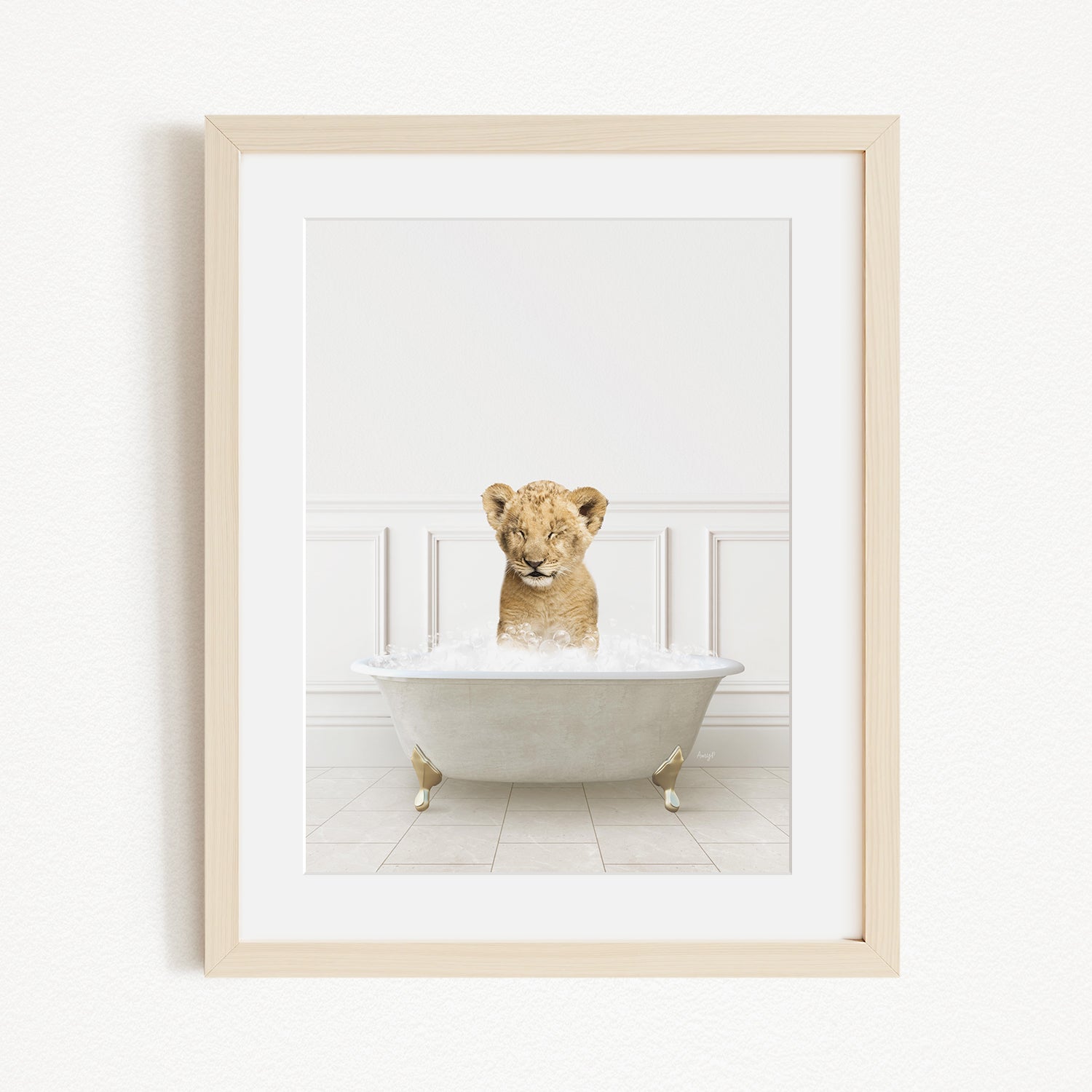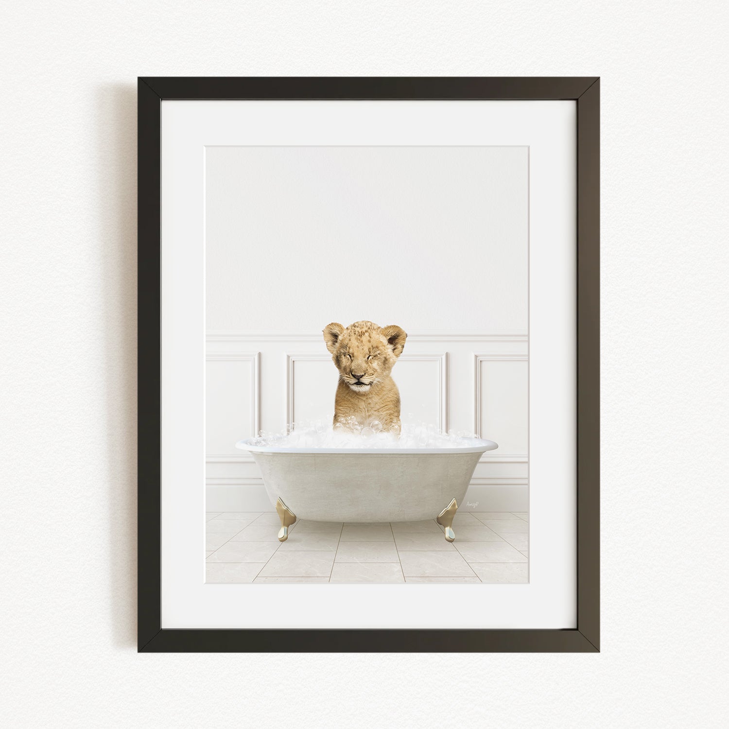 Lion Cub in Modern Neutral Bath