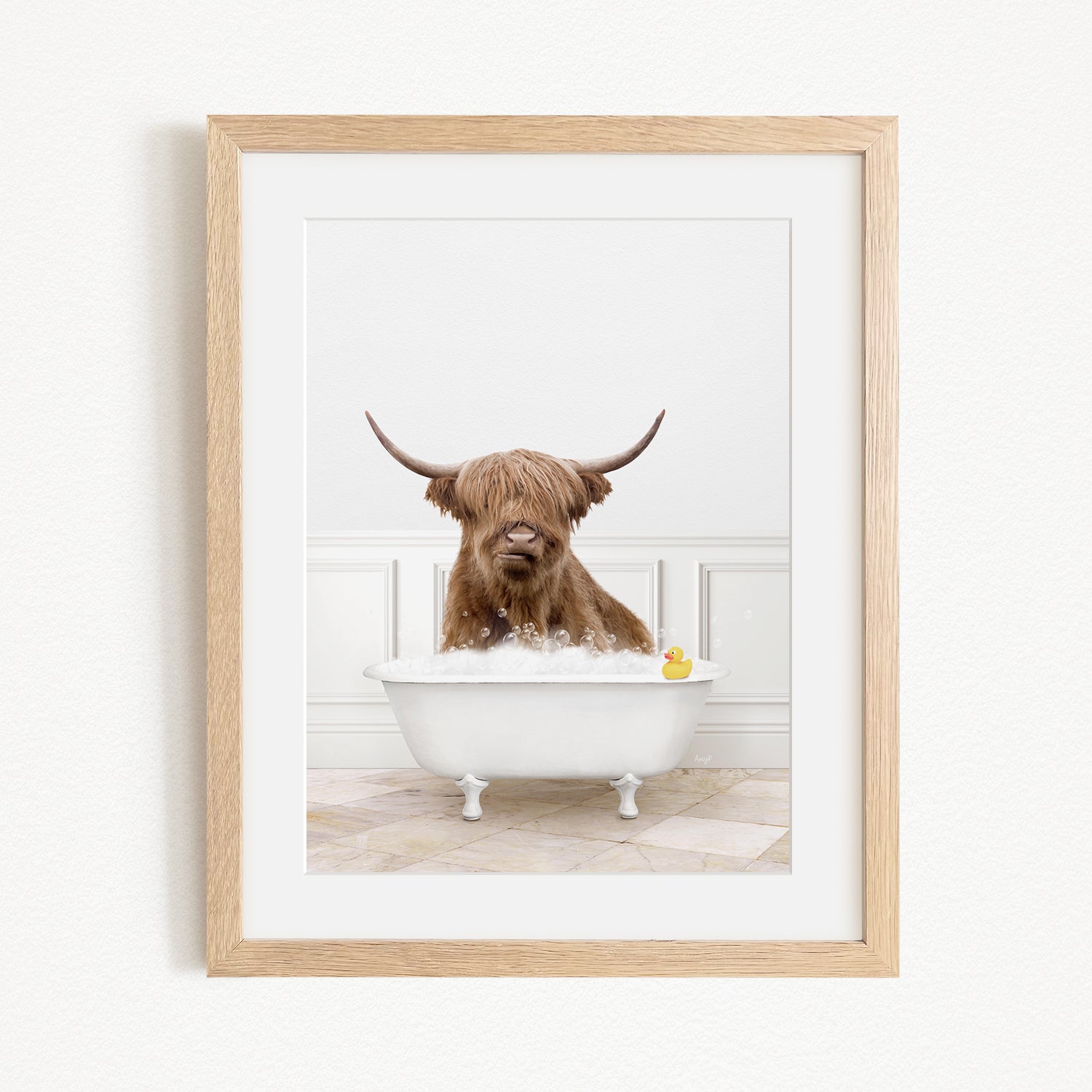 Highland Cow in Modern Bath