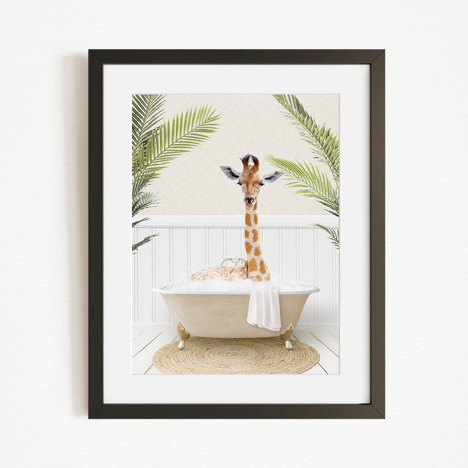 Giraffe in Palms Bath