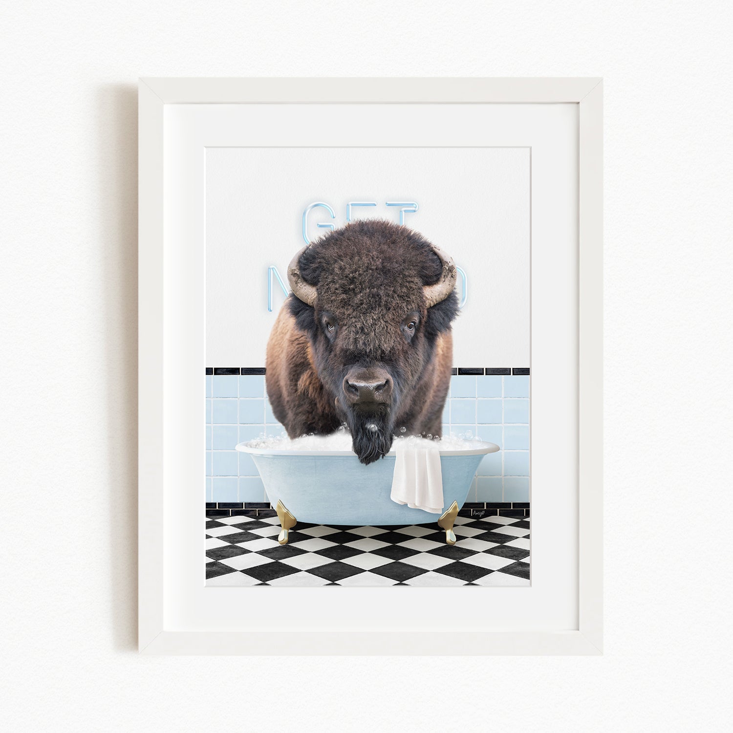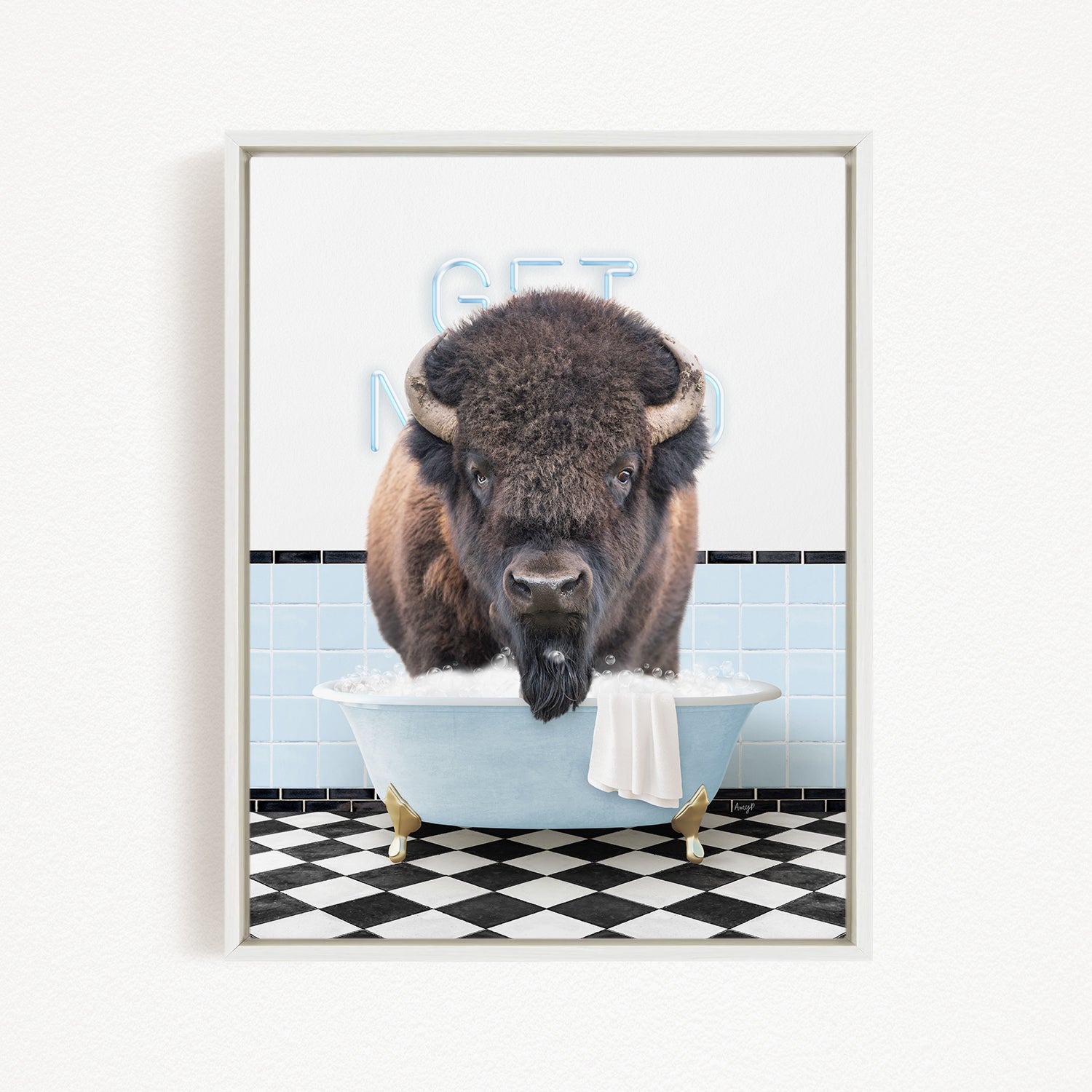 Bison in Retro Blue Bath