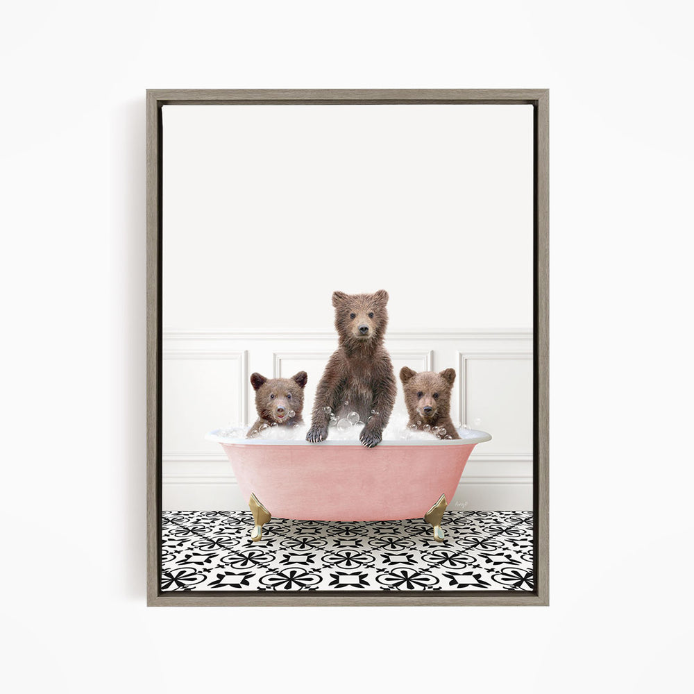 Three Bear Cubs in Stencil Tile with Pink Bathtub Bath