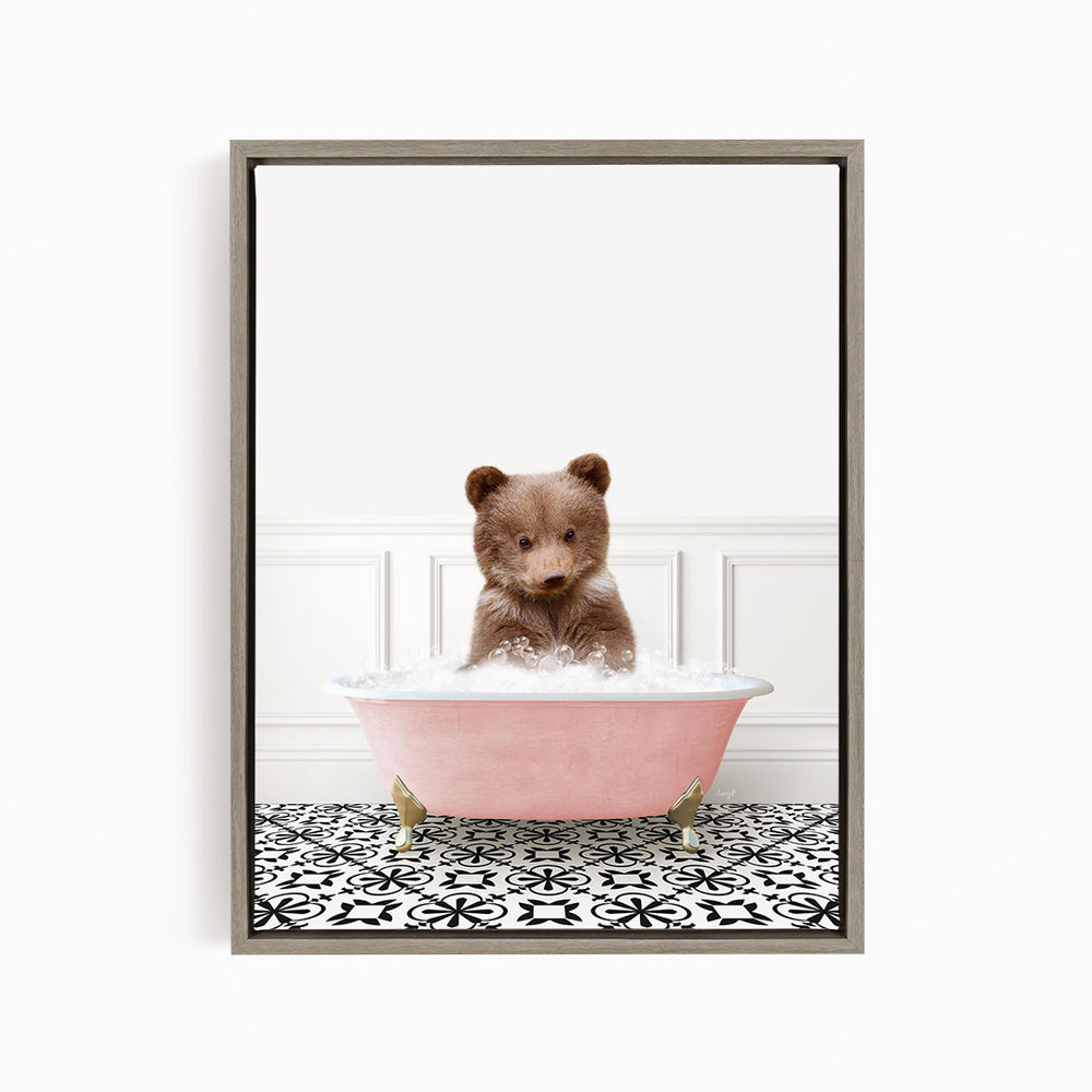 Bear Cub in Stencil Tile with Pink Bathtub Bath