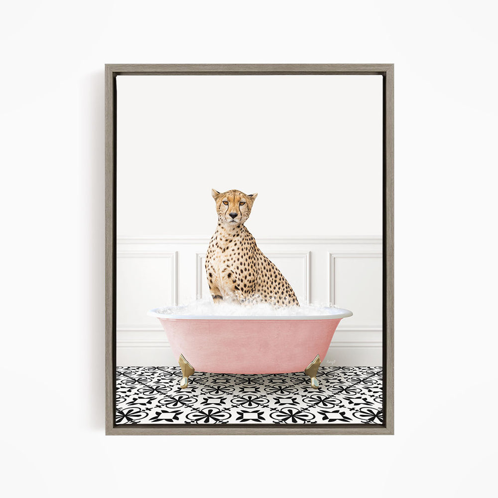 Cheetah in Stencil Tile with Pink Bathtub Bath