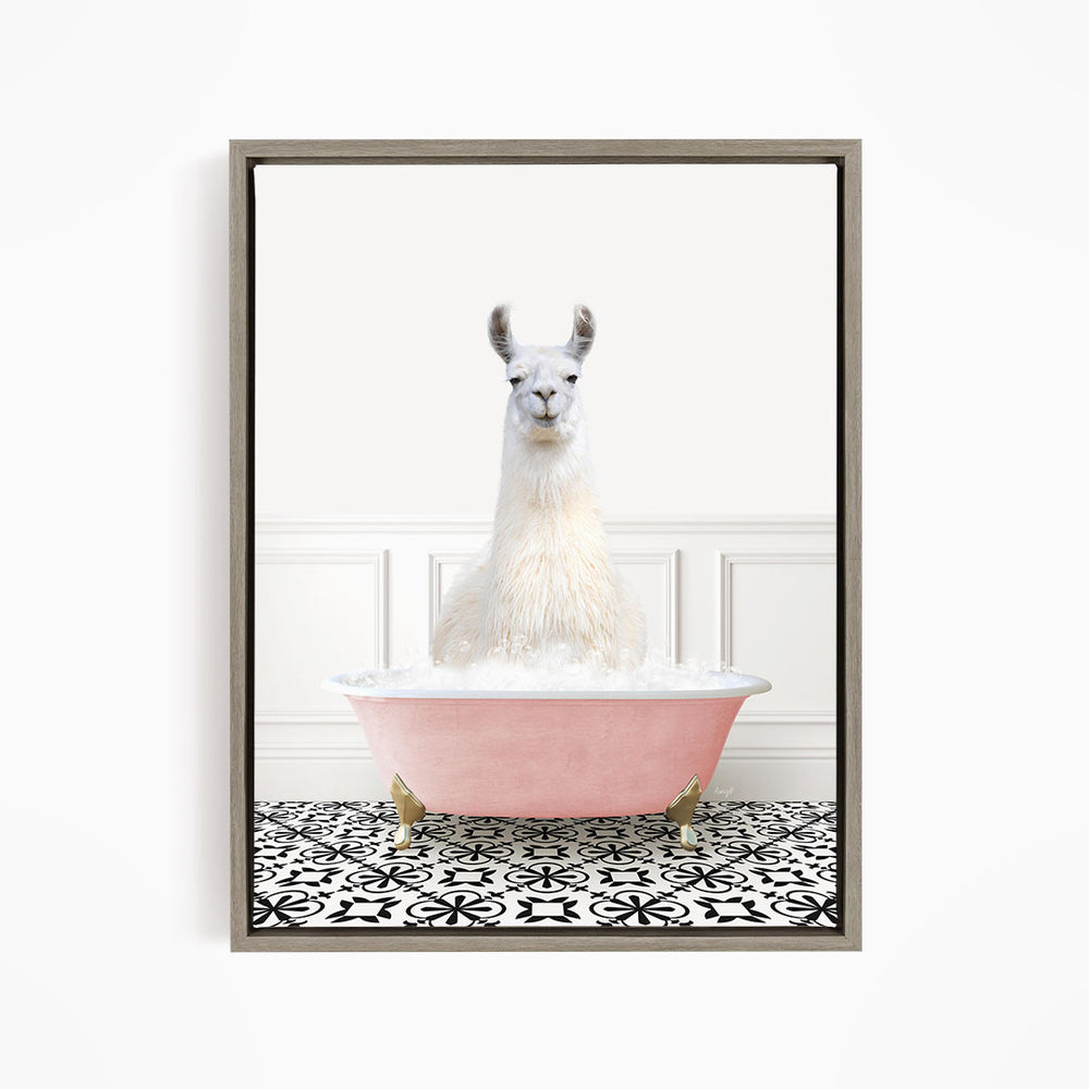 Alpaca in Stencil Tile with Pink Bathtub Bath