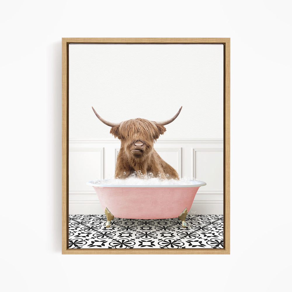 Highland Cow in Stencil Tile with Pink Bathtub Bath