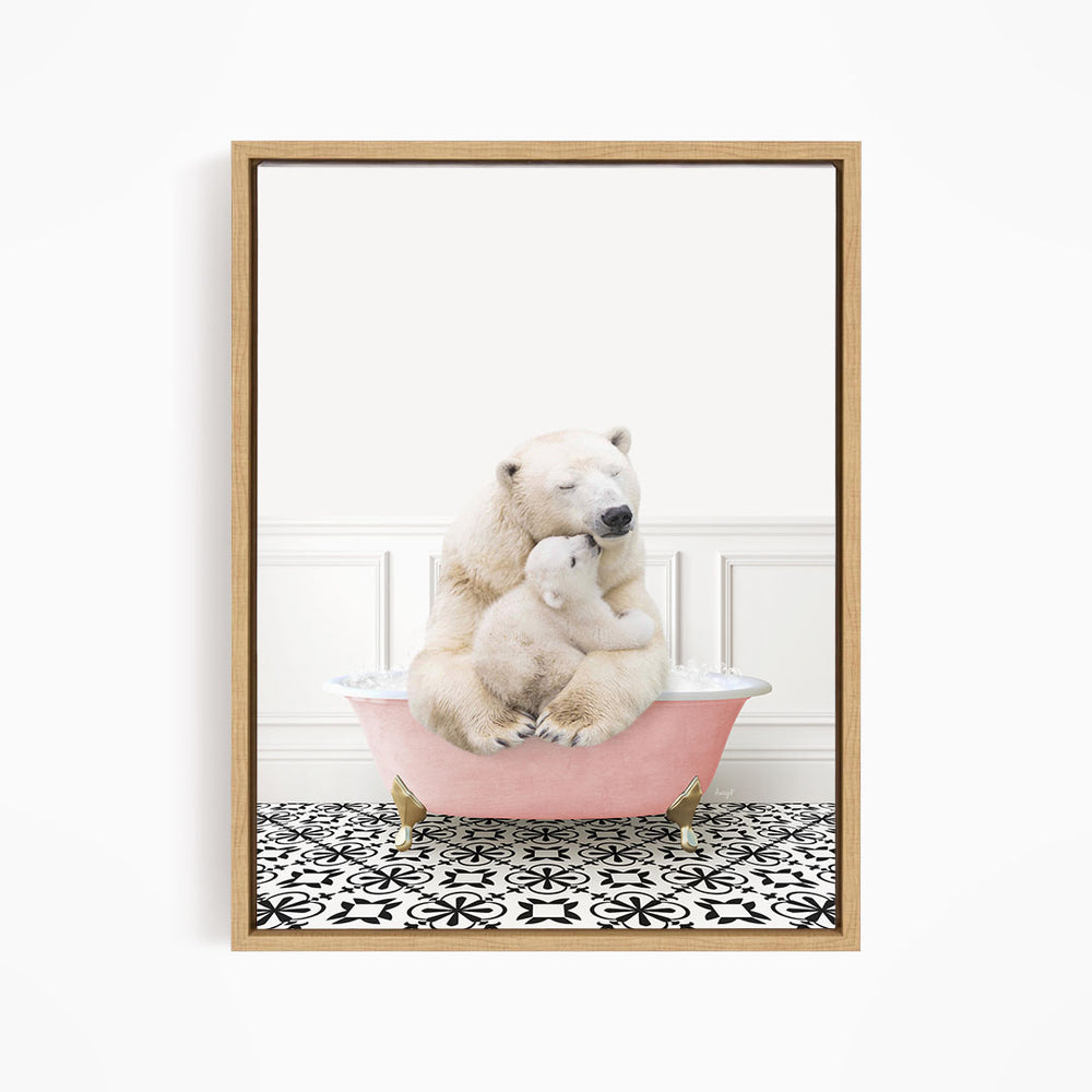 Mother and Baby Polar Bear in Stencil Tile with Pink Bathtub Bath