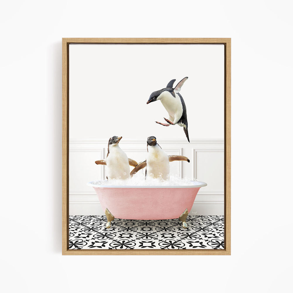 Penguins Playing in Stencil Tile with Pink Bathtub Bath