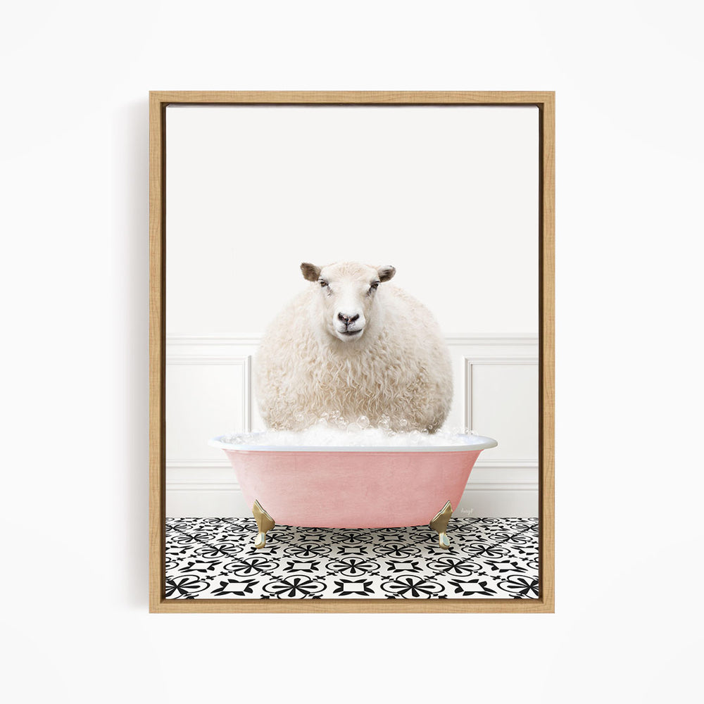 Sheep in Stencil Tile with Pink Bathtub Bath