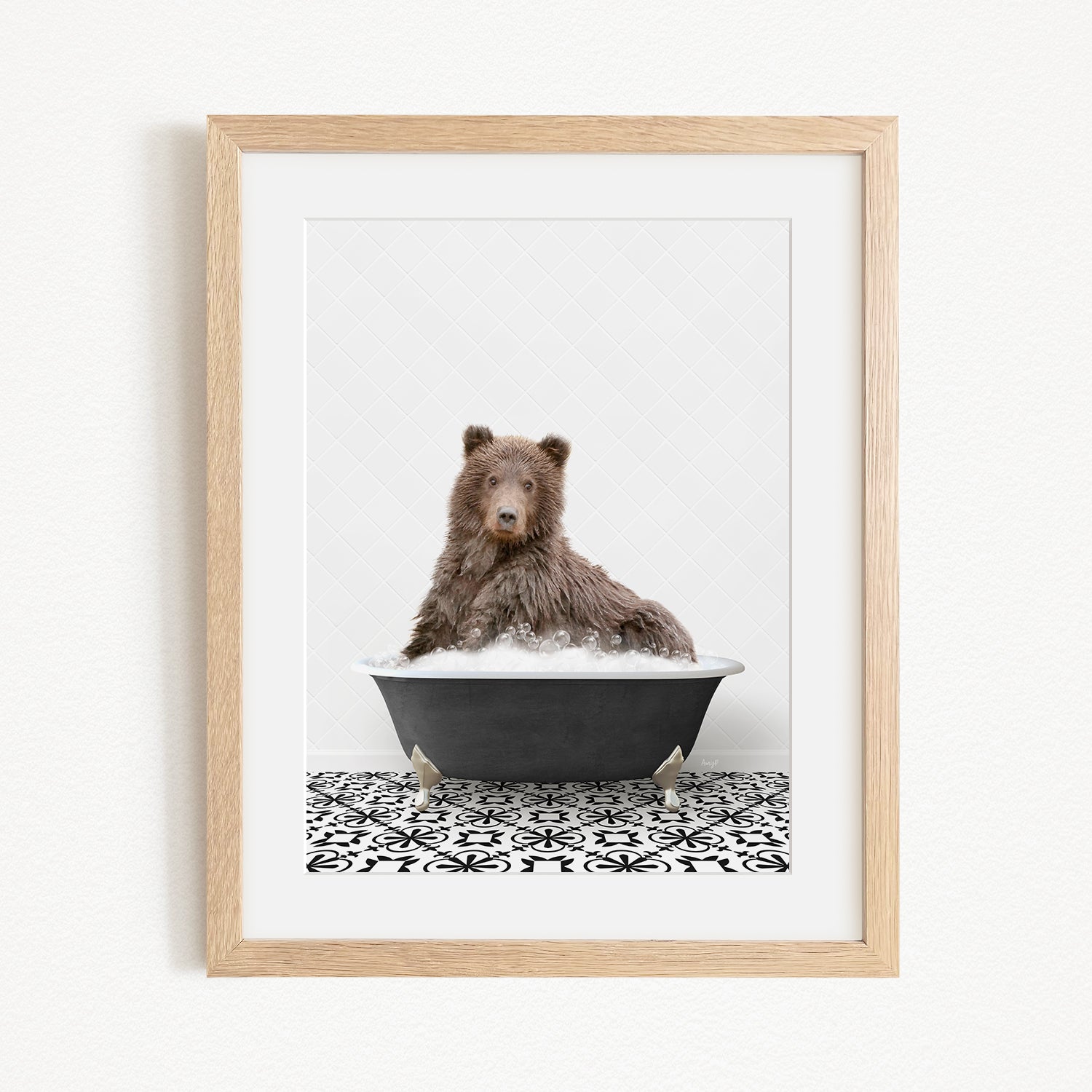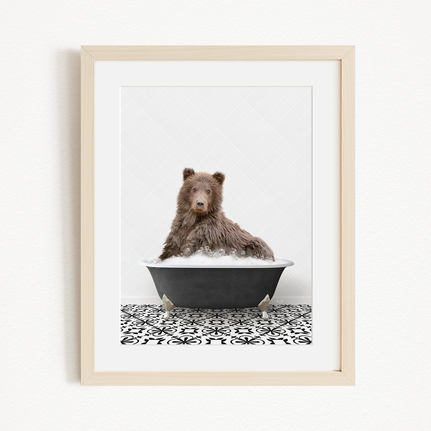 Bear in Stencil Black & White Bath