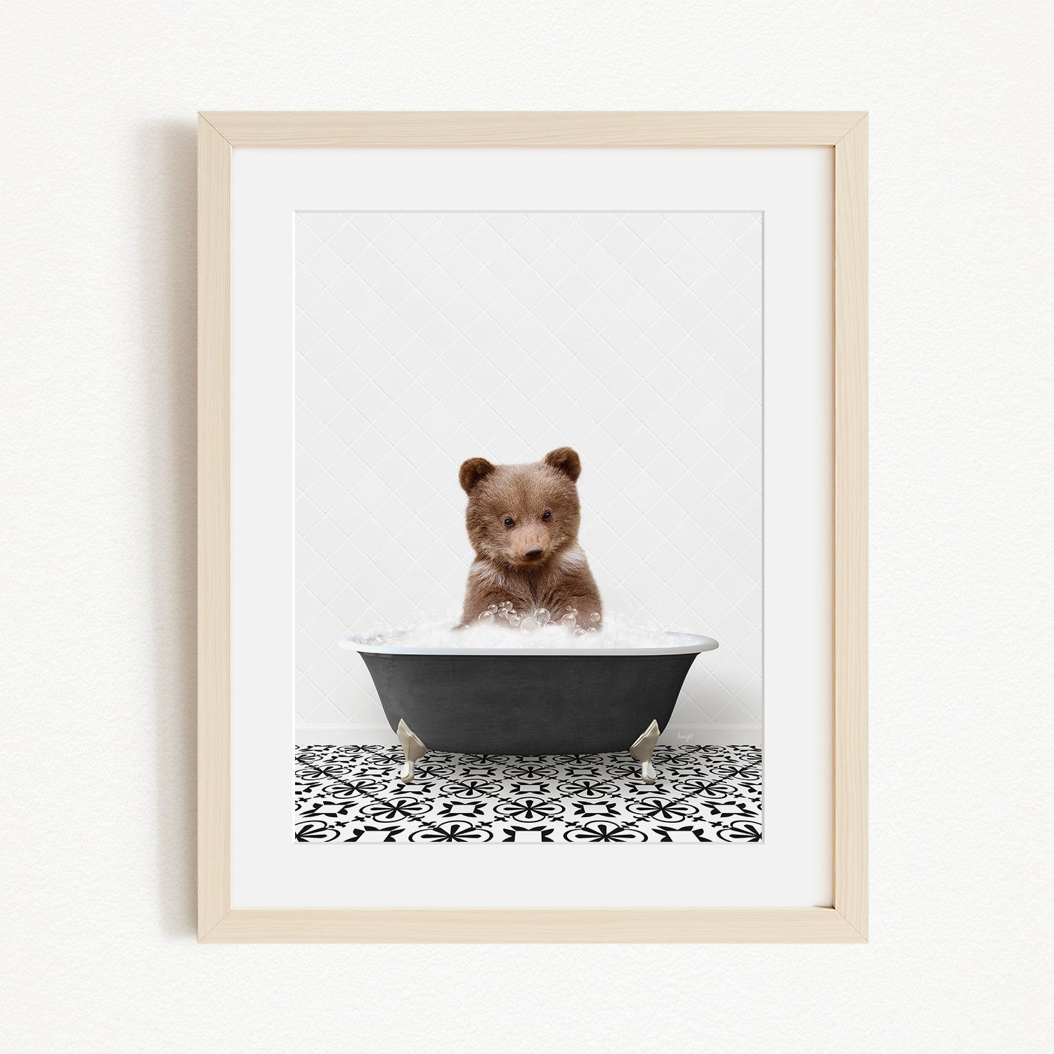 Bear Cub in Stencil Black & White Bath