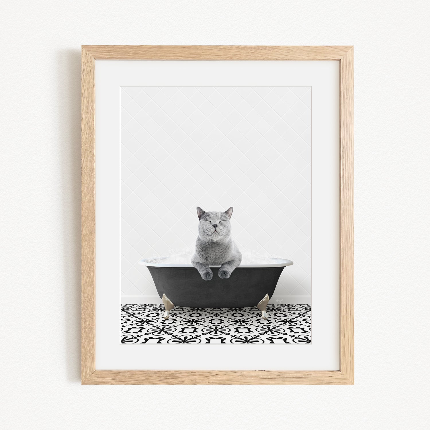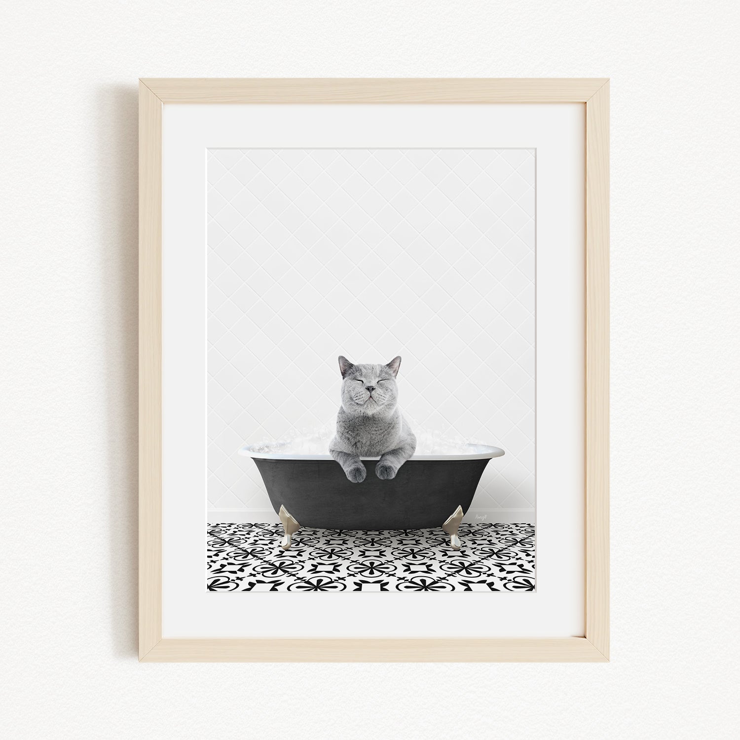 Cat in Stencil Black & White Bath