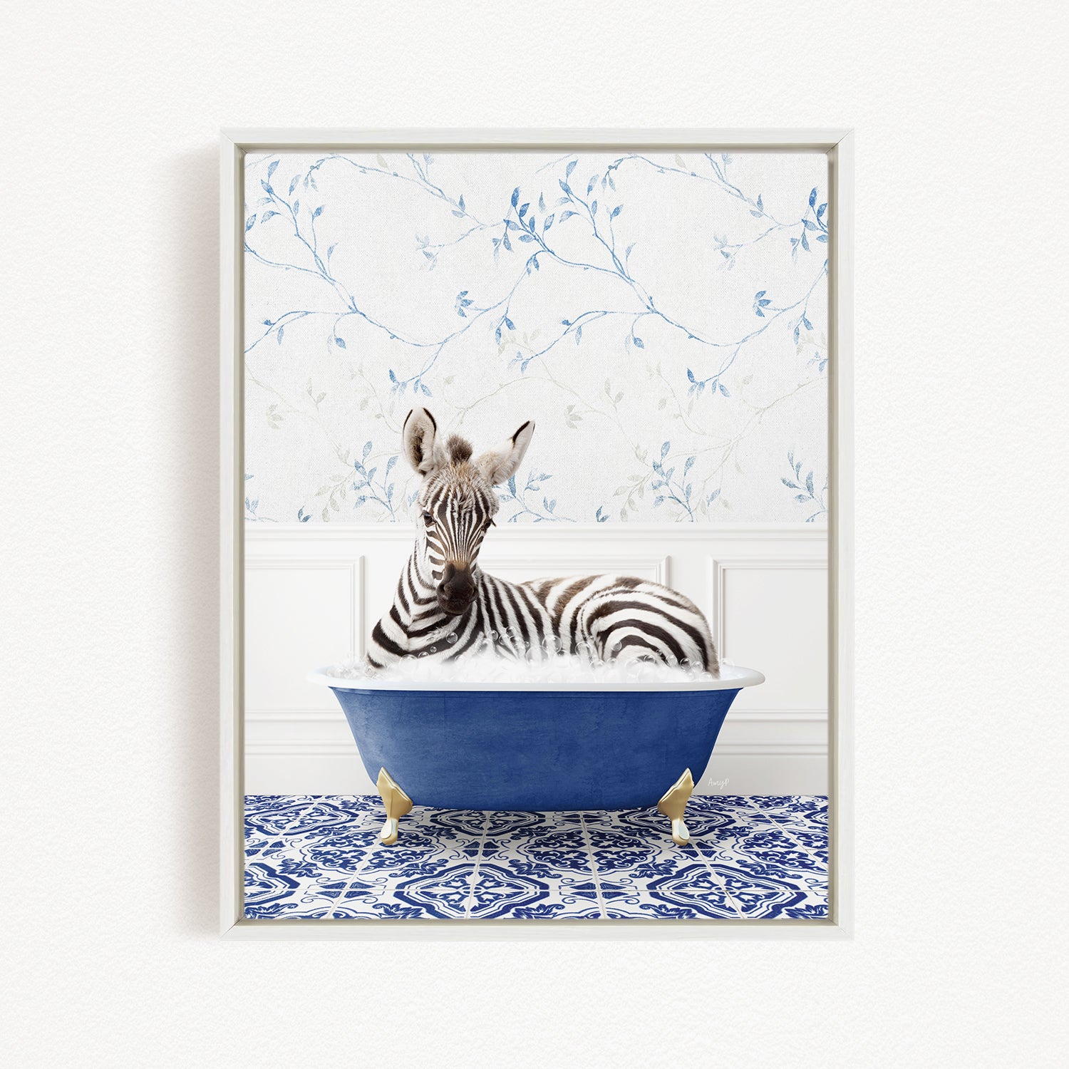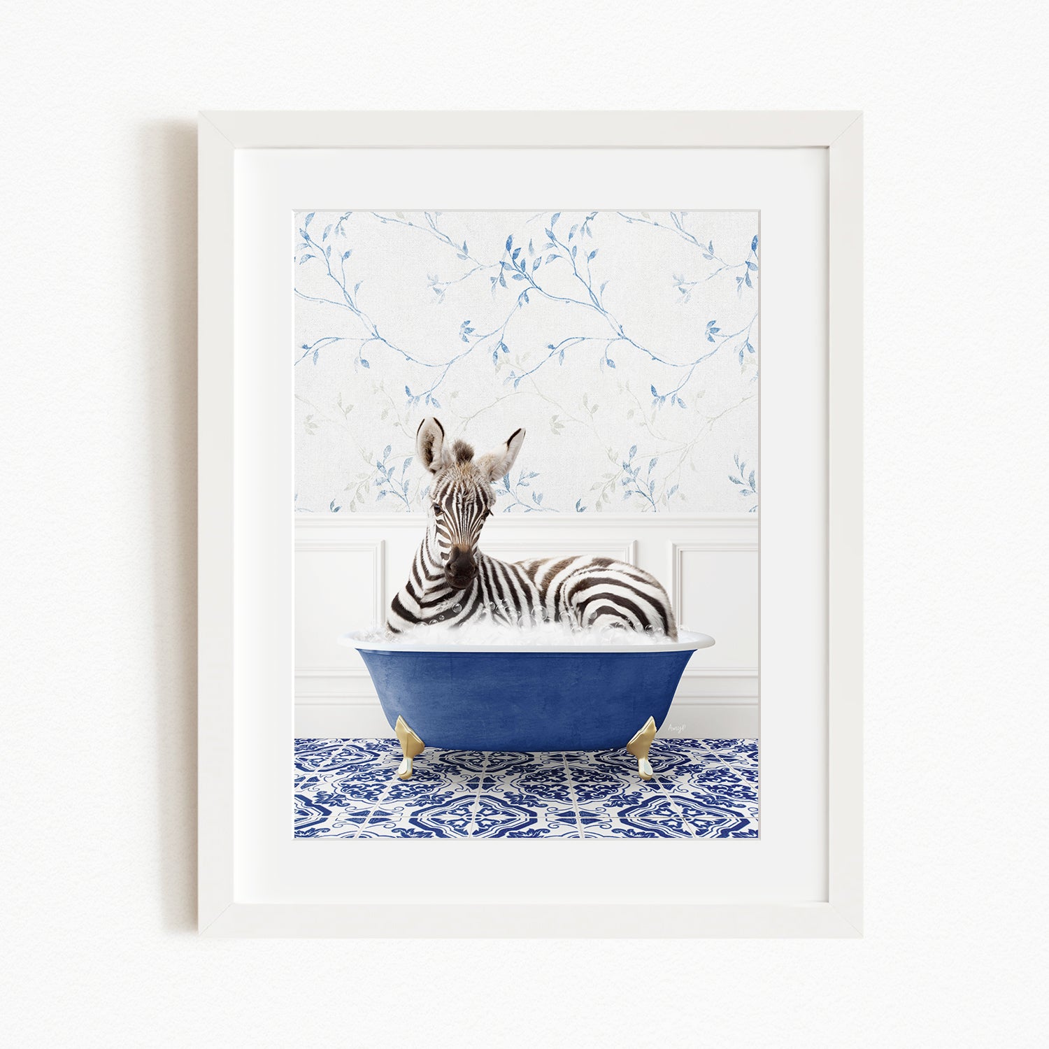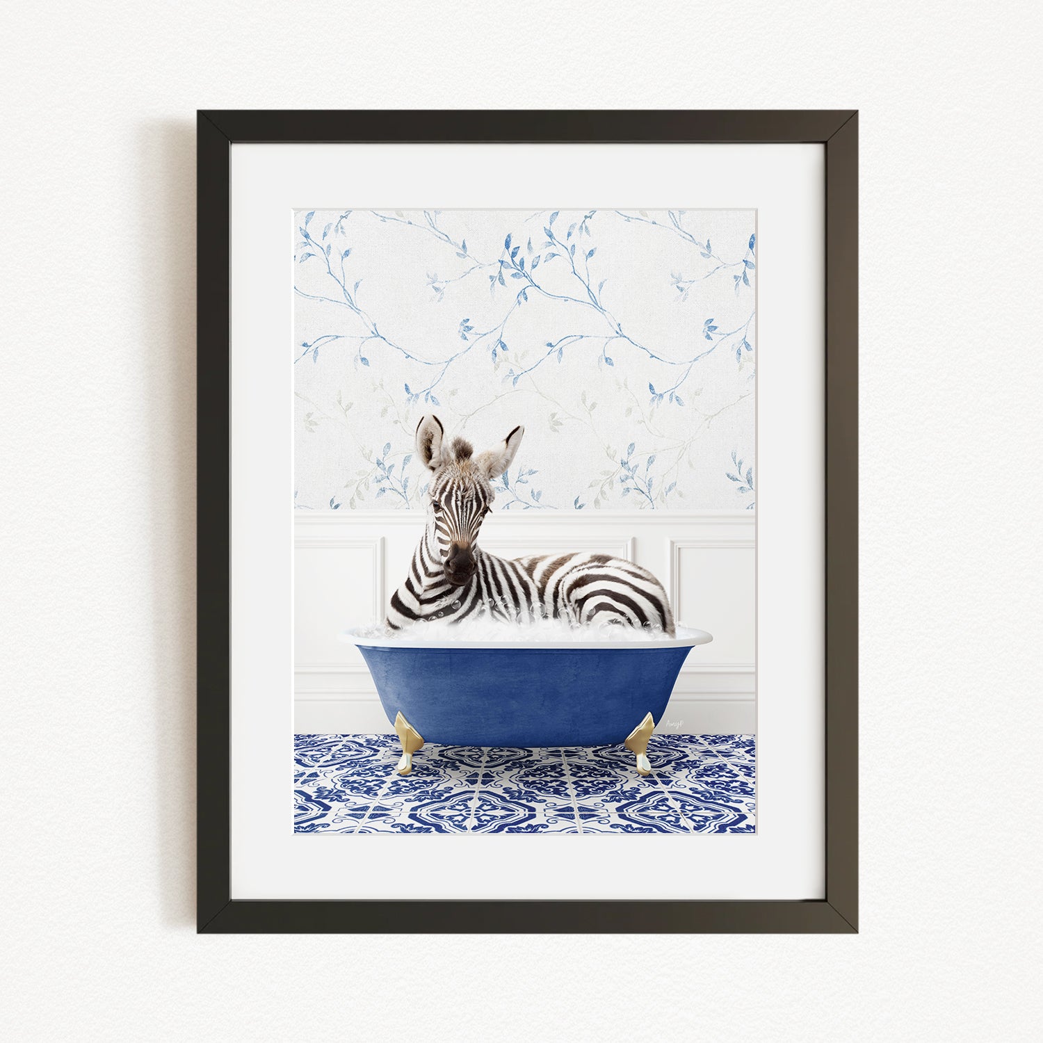 Baby Zebra in Eclectic Blue Bath